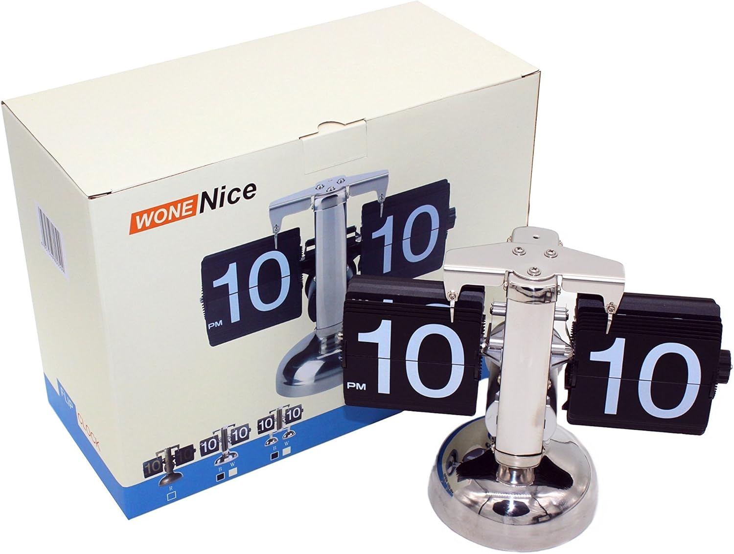WoneNice Auto Flip Clock, Battery Powered Retro Desk Clock with Large Numbers for Office Bedroom Kitchen School Hotel Café - Black
