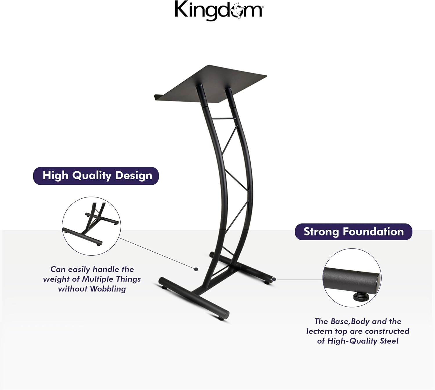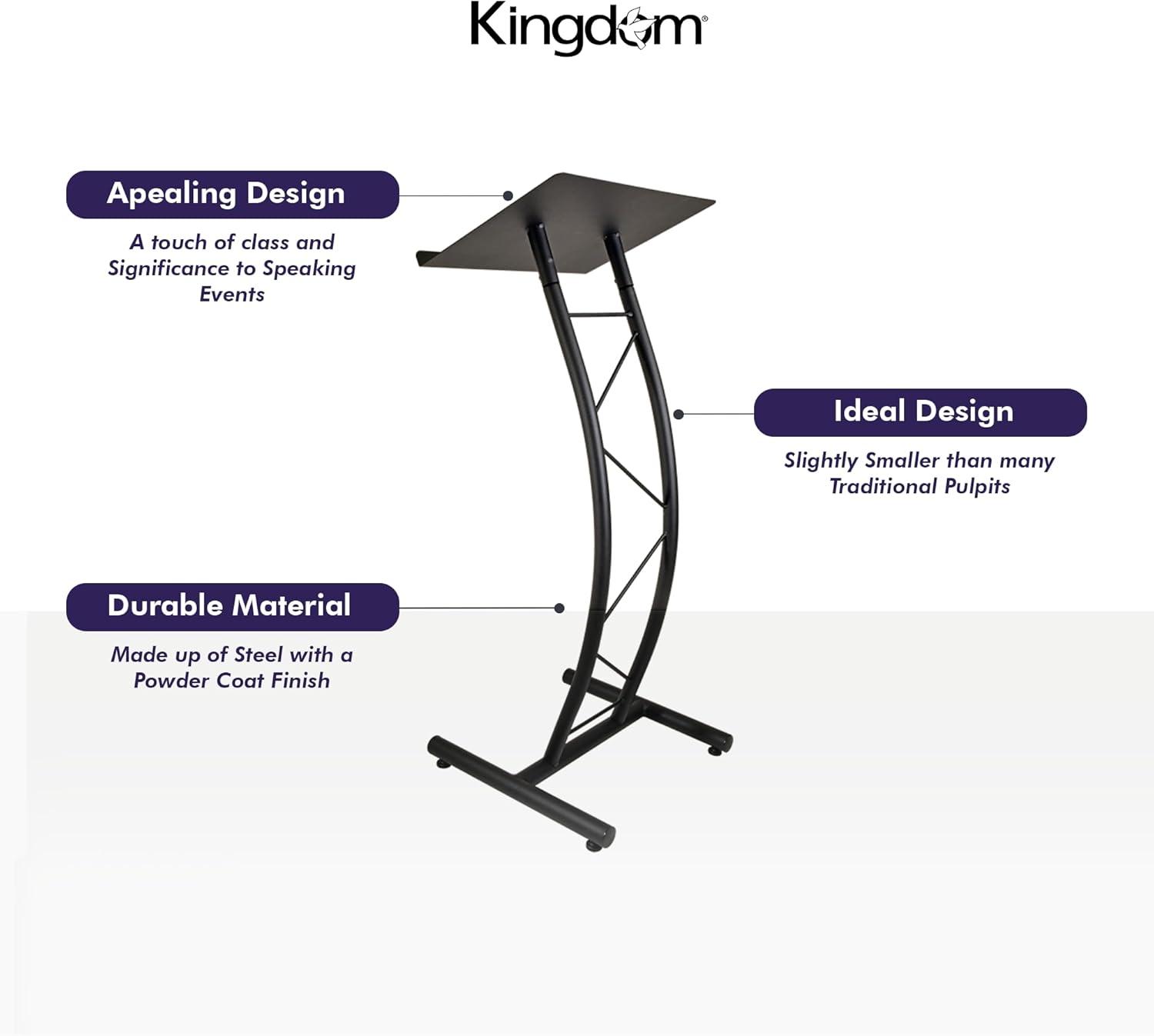 Kingdom KML8CB All Metal-Constructed Curved Lectern with “H” Style Base, Stand up Church Pulpit, Slanted Lectern, Conference Podium for Speakers, Speeches, Other Occasions, Powder Coat Finish Black