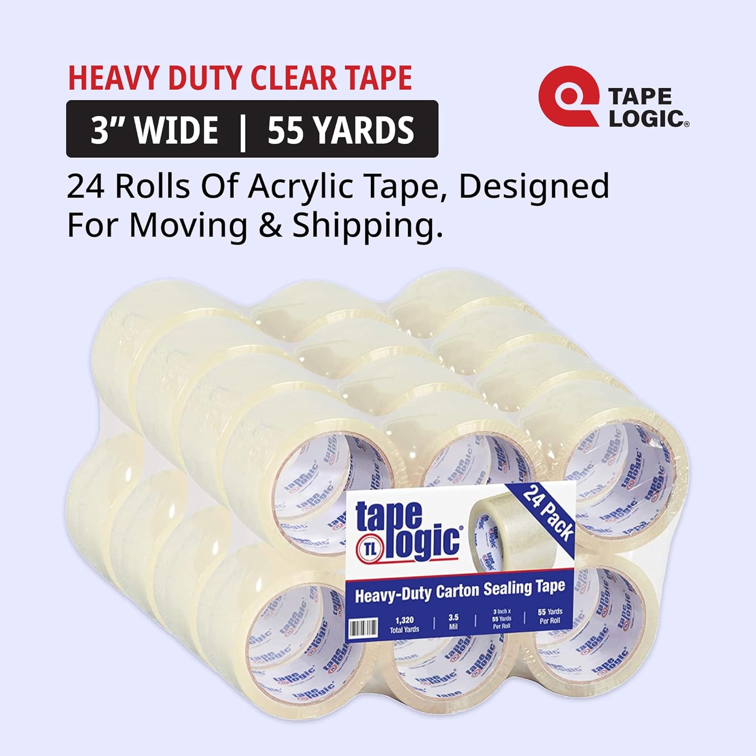 Tape Logic 3" x 55 yds Acrylic Packing Tape 3.5 Mil, Clear (24-Pack) Heavy Duty Packing Tape Rolls for Sealing Boxes at Home, Warehouse, & Office, Supplies for Packaging, Shipping, Moving
