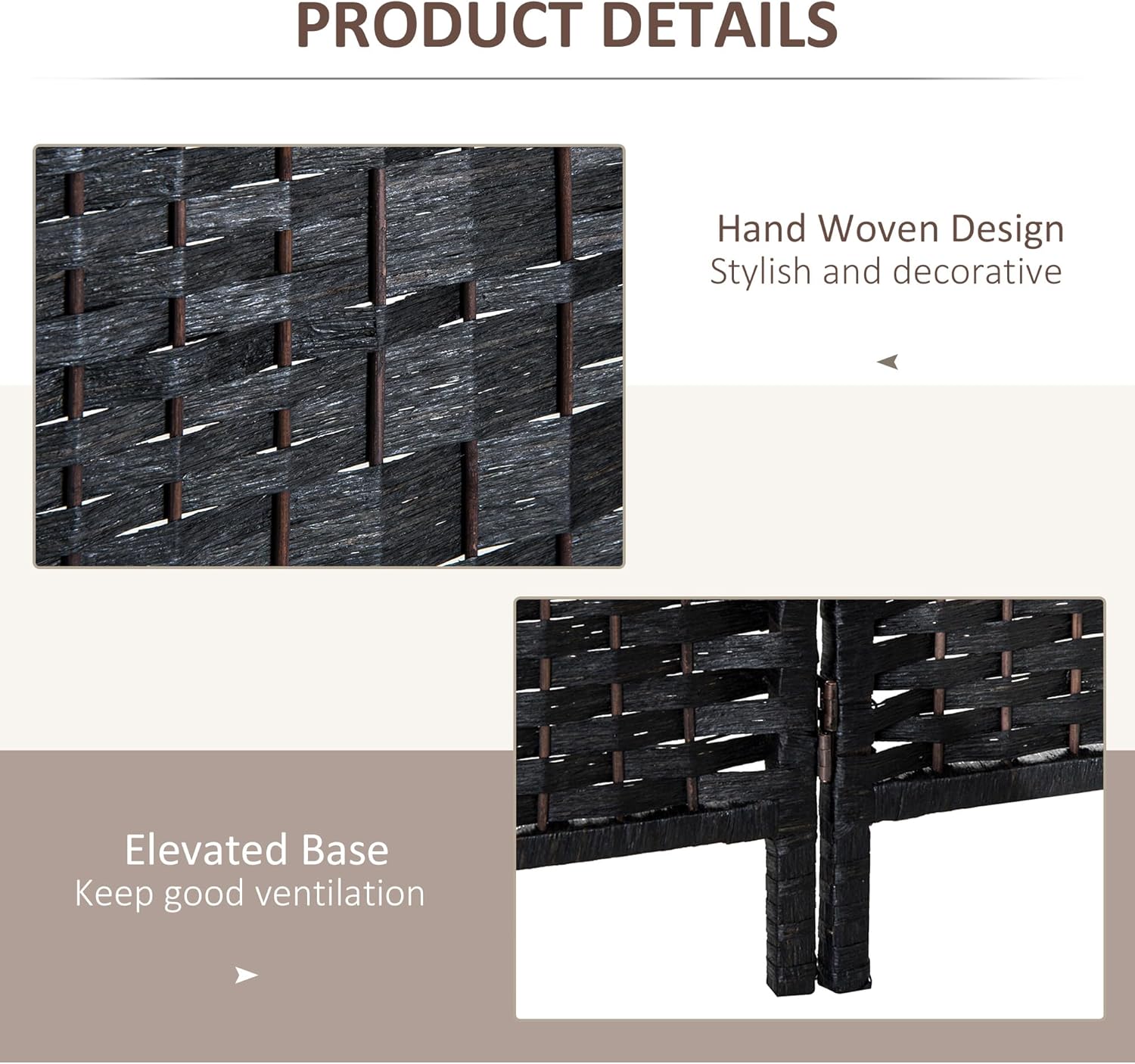 HOMCOM Room Divider 4 Panels Folding Privacy Screen 6FT Tall Portable Wicker Weave Partition Wall Divider for Bedroom Home Office, Black