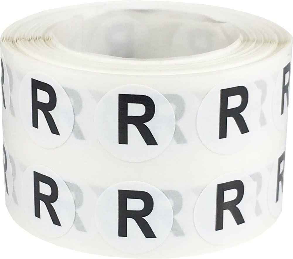 - 1/2 Inch Round: These 1/2 inch round, letter R stickers are made from semi-gloss paper, perfect for arts and crafts, inventory organization, and chart files. Made in the USA.