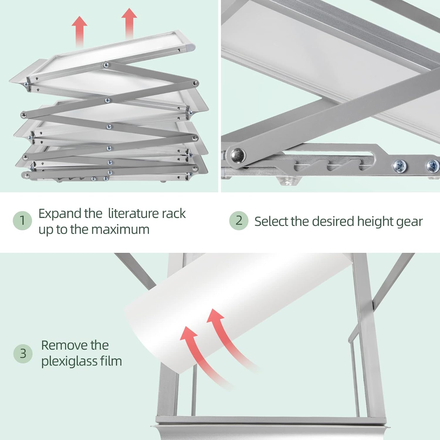 - Folding Literature Rack : The aluminum brochure display rack is collapsible, set up and break down is wery easy, unfold big enough, store very small.