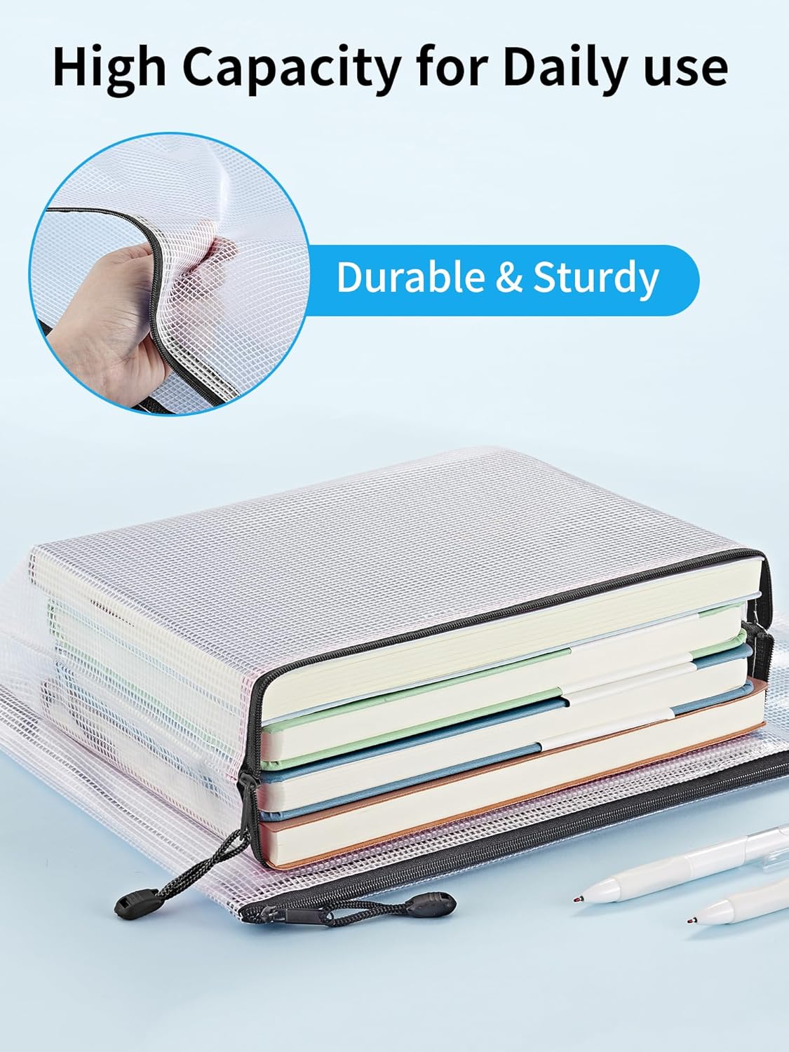 - 18 Pieces Zipper Bags - The package includes 18pcs zipper mesh pouches in 8 sizes. They are 2*B4 (15×11 inches), 2*A4 (13.2×9.4inch), 2*B5 (11.6×8.3 inches), 2*A5 (9.4×6.9 inches), 2*B6 (7.7×5.5 inches), 2*A6 (7.3×4.5 inches), 4*Bills (9.4×4.3 inches), 2*B8 (5.1×4.1 inches).