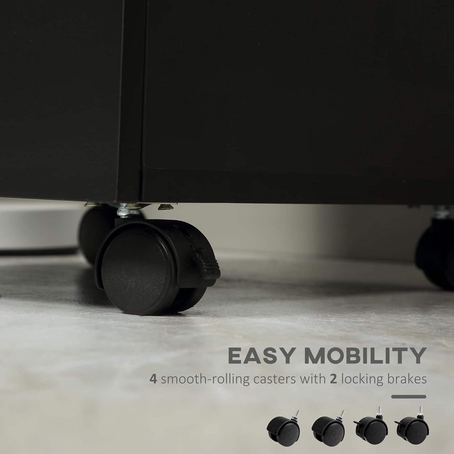 - Easy Mobility: The four smooth-rolling casters with two locking brakes make the mobile cabinet super simple to move and relocate throughout the office or house.
