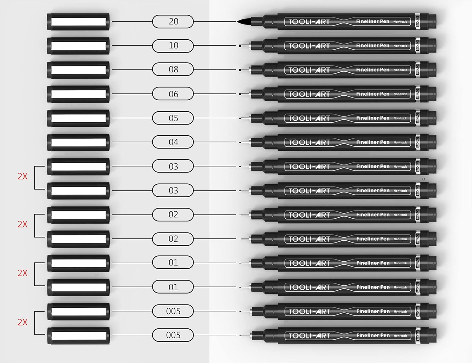 - ✔️AMAZING VALUE – You get 14 needle point pens in a variety of precise tips. Get double the amount of the finer tips you’re likely to use often such as the 005, 01, and 02. Included is a useful organizer zipper bag to keep it all neatly in place at home or travelling!