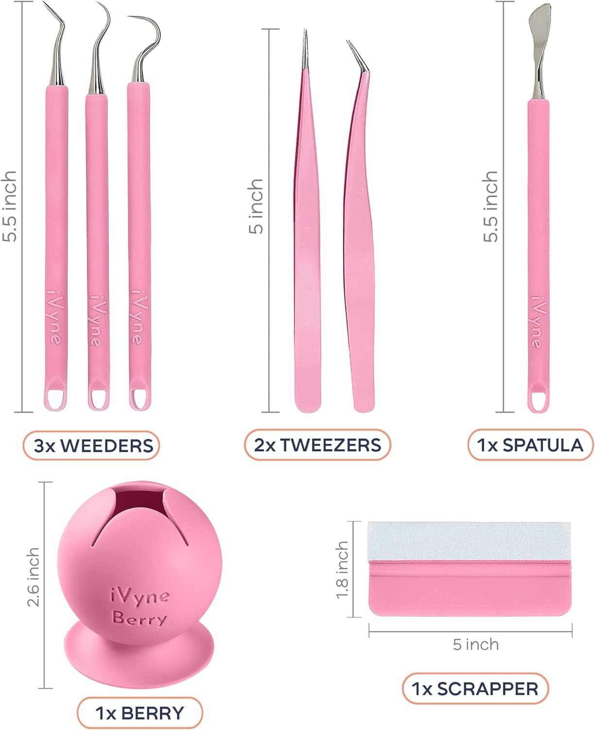 iVyne (8pcs) Premium Vinyl Weeding Tool Kit & Weeding Scrap Collector Soft Grip Tools with Berry, Weeder, Tweezers, Picker Or Hook, and Scraper Set for Silhouette Cameos & Cricut - Pink