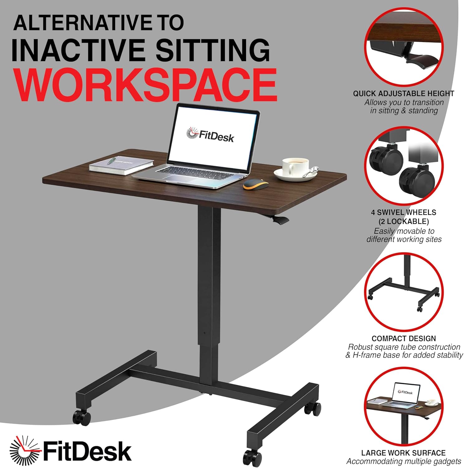 FitDesk Portable Laptop Desk, Rolling Standing Workstation Adjustable Height, Compact Standing Table with Large Surface, Small Stand Desk for Home Office, 30 lb Weight Limit – Walnut, 27" Tabletop
