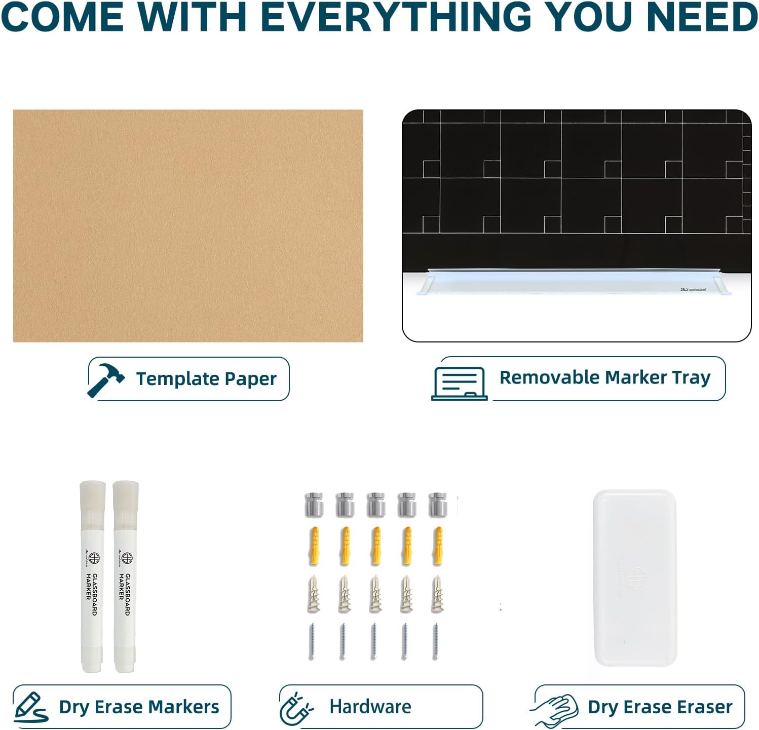 - 【Accessories Included】 The package includes 1 dry erase marker, 4 magnets and 1 glass whiteboard eraser, 1 removable aluminium marker tray, and 1 template paper for mounting. One-stop shopping. It's a great gift idea for your workmate, boss or spouse which can enhance the office/ house wall.