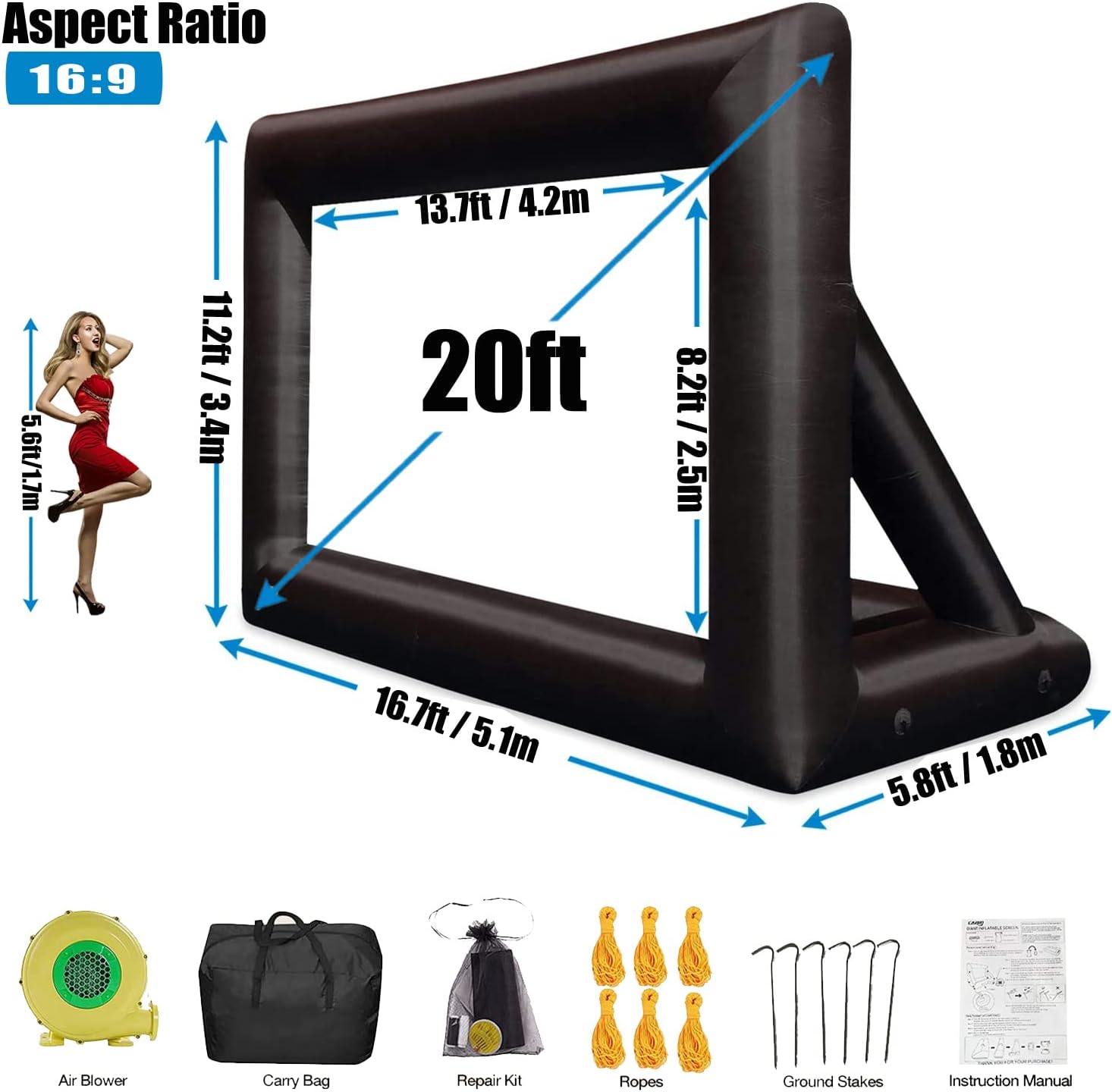 CZGBRO Inflatable Projector Screen - 20FT Outdoor Movie Screen Blow Up for Movie Parties Backyard Outside with Air Blower and Carry Bag, Front and Rear Projection
