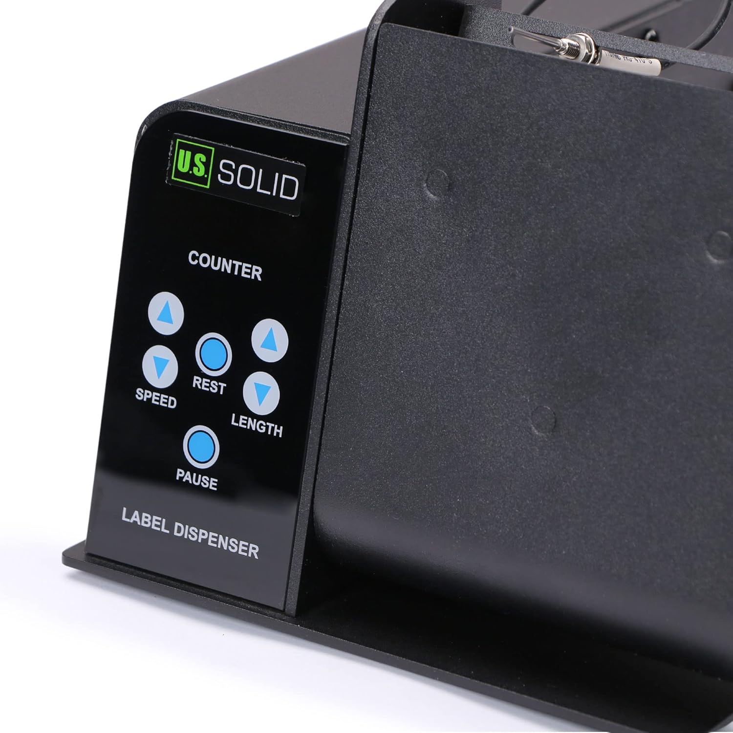 U.S. Solid Automatic Label Dispenser with Fibre Optic Sensor for Transparent and Opaque Labels - Label Width 0.4-4.3 in, Automatic Counting 0-999999 & 9 Level Speed
