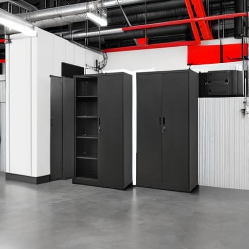 BESFUR Metal Storage Cabinet, 72" H x 36" W x 18" D Garage Storage Cabinet, Adjustable Shelves and Locking Doors for Office, School, Garage - Black