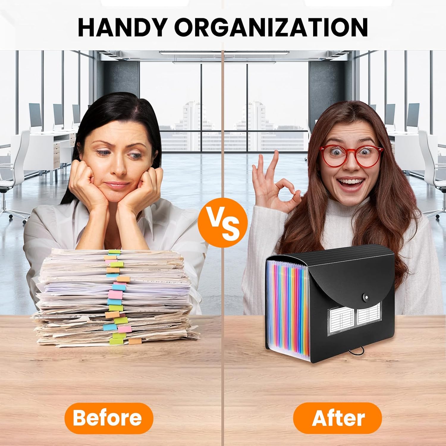 - All-In-One Monthly Organizer: Keep all your important documents in one place with Sooez Accordion File Organizer. 13 pockets design works great for Monthly organizing and protecting all your important paperwork, bills, taxes, receipts, invoices and more. Perfect for letter size.