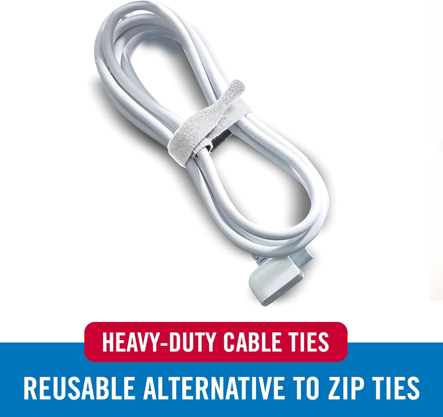 - WIRE ORGANIZING SELF BUNDLING STRAPS - Secure large cords and bulky cables these white cable ties reusable VELCRO brand straps; get organized fast with simple to use, self-fastening ties that store cords and wires quickly and safely