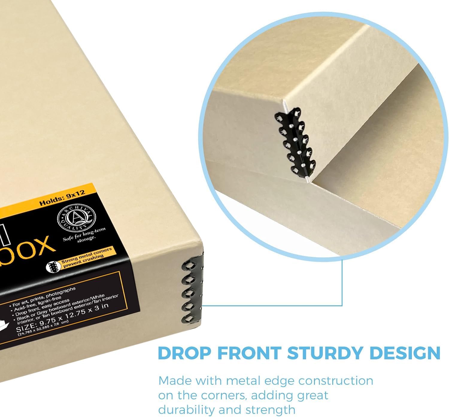 Lineco, 9x12 Tan Color Museum Archival Storage Box, Drop Front Design. Acid-Free with Metal Edge. Preserves Picture Longevity, organize Photos, Documents, Crafts, Diy, Pack of 2
