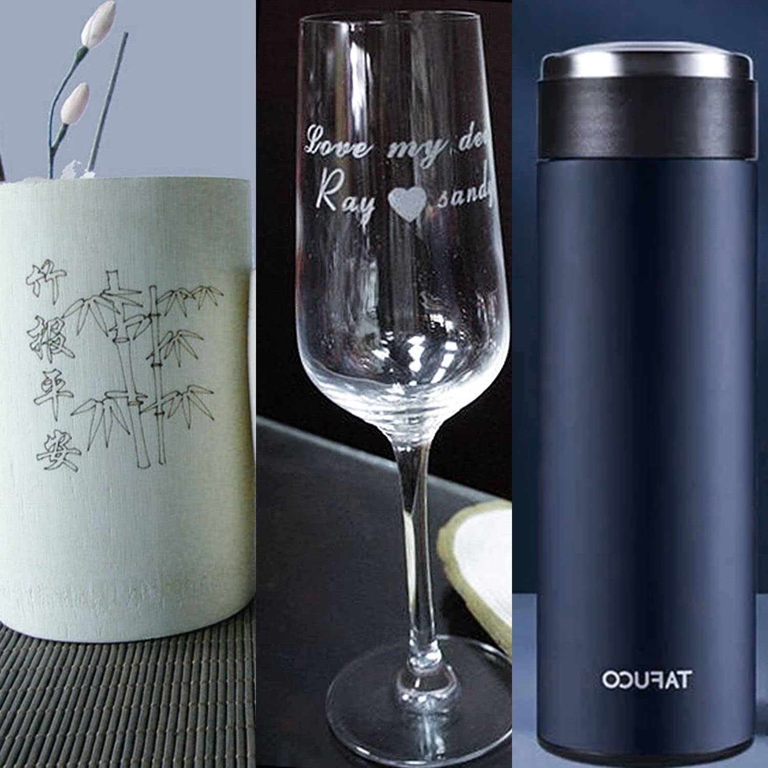 - Applications: Ideal for 360° engraving for glasses, coated drinking cups, cans, wood and other cylindrical objects.