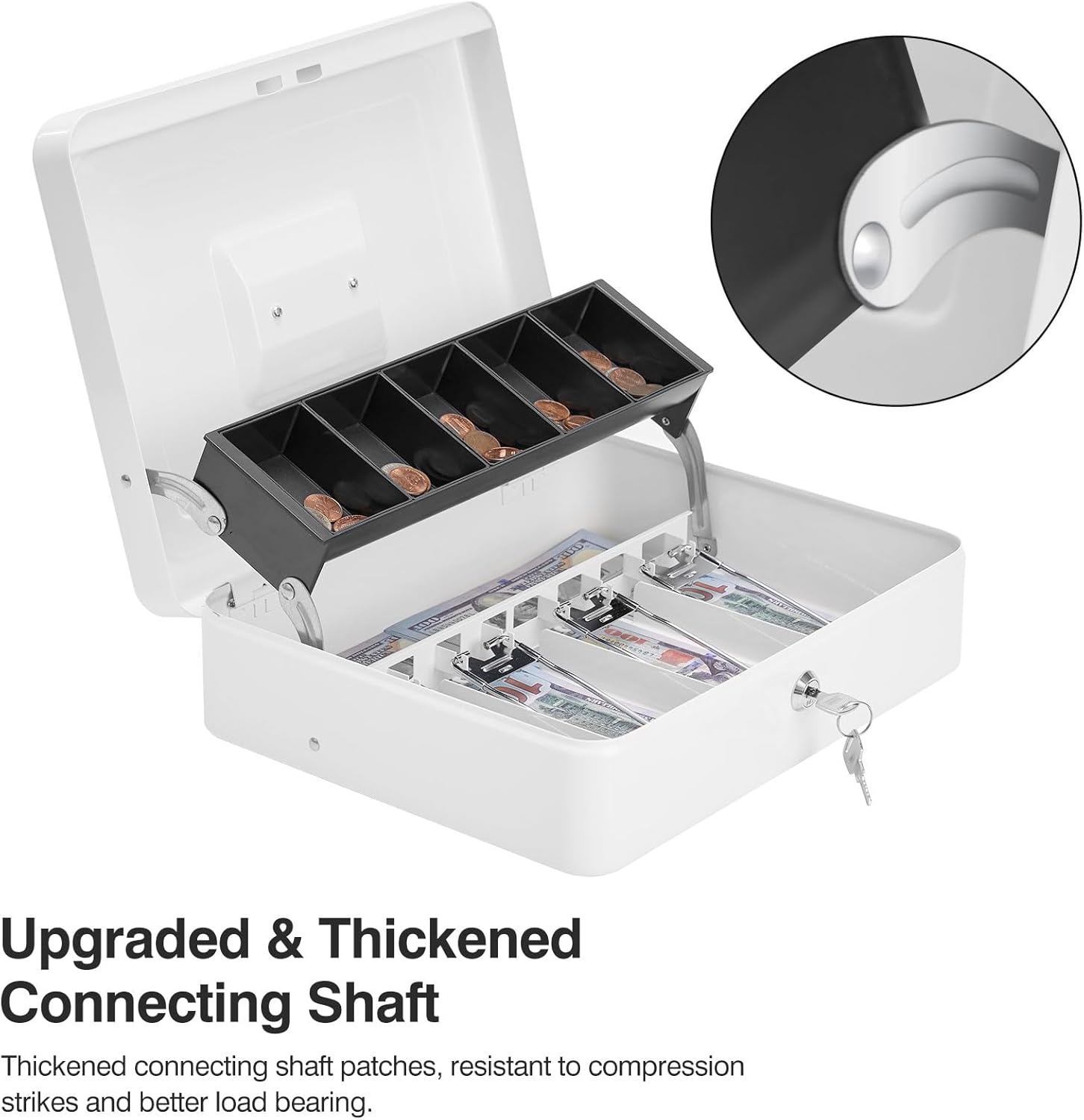 Large Locking Cash Box with Key Lock and Money Tray, Money Box with Cash Tray, Lock Safe Box for Office Business, 11.8" x 9.5" x 3.5", White