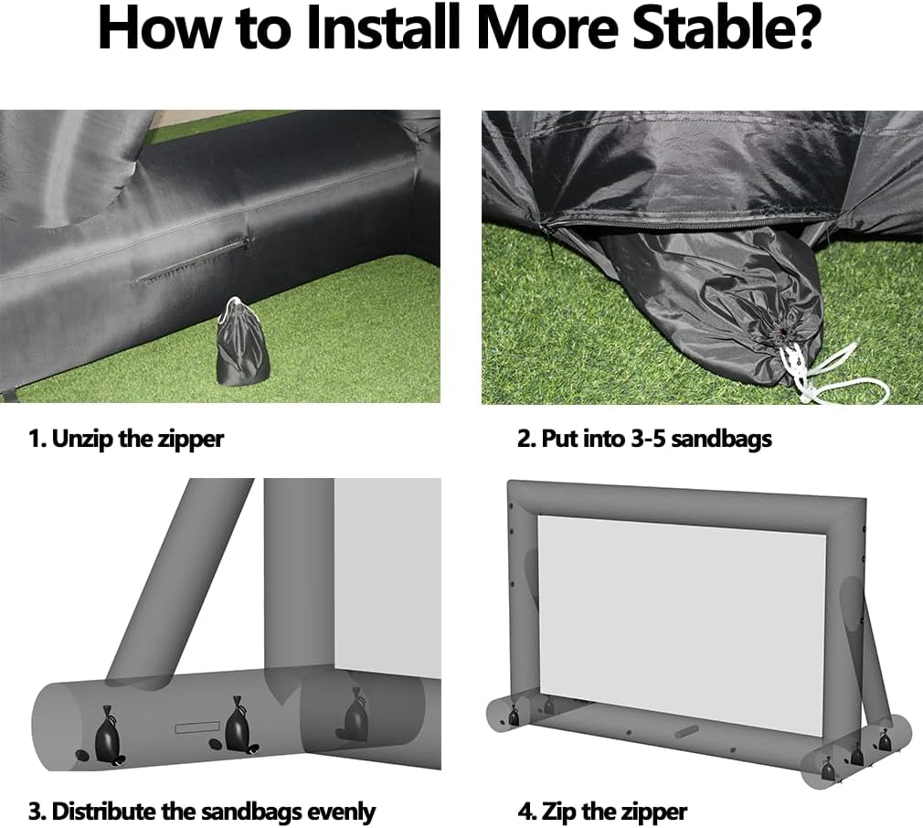- ❤️📽️【Enhanced Stable Structure】Improved frame structure, equipped with 18 D-rings, ground nails, and 10 sandbags to support the mega screen.