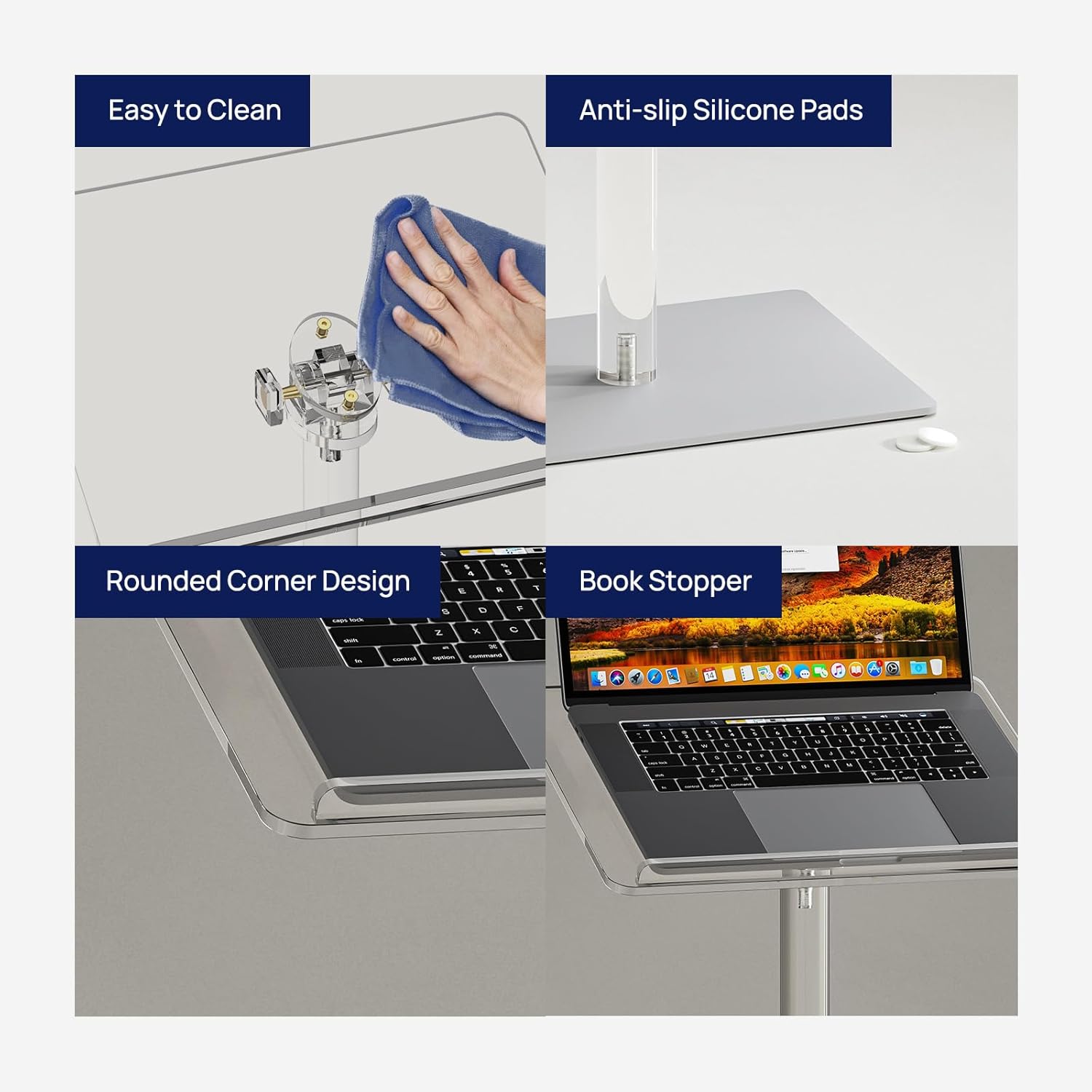 HMYHUM Small Acrylic Podium Stand, Angle Adjustable, 15.7" L x 11.8" W x 42.3" H, Modern Lecterns & Pulpits for Classroom, Concert, Church, Speech, Easy Assembly, Metal Base, Clear