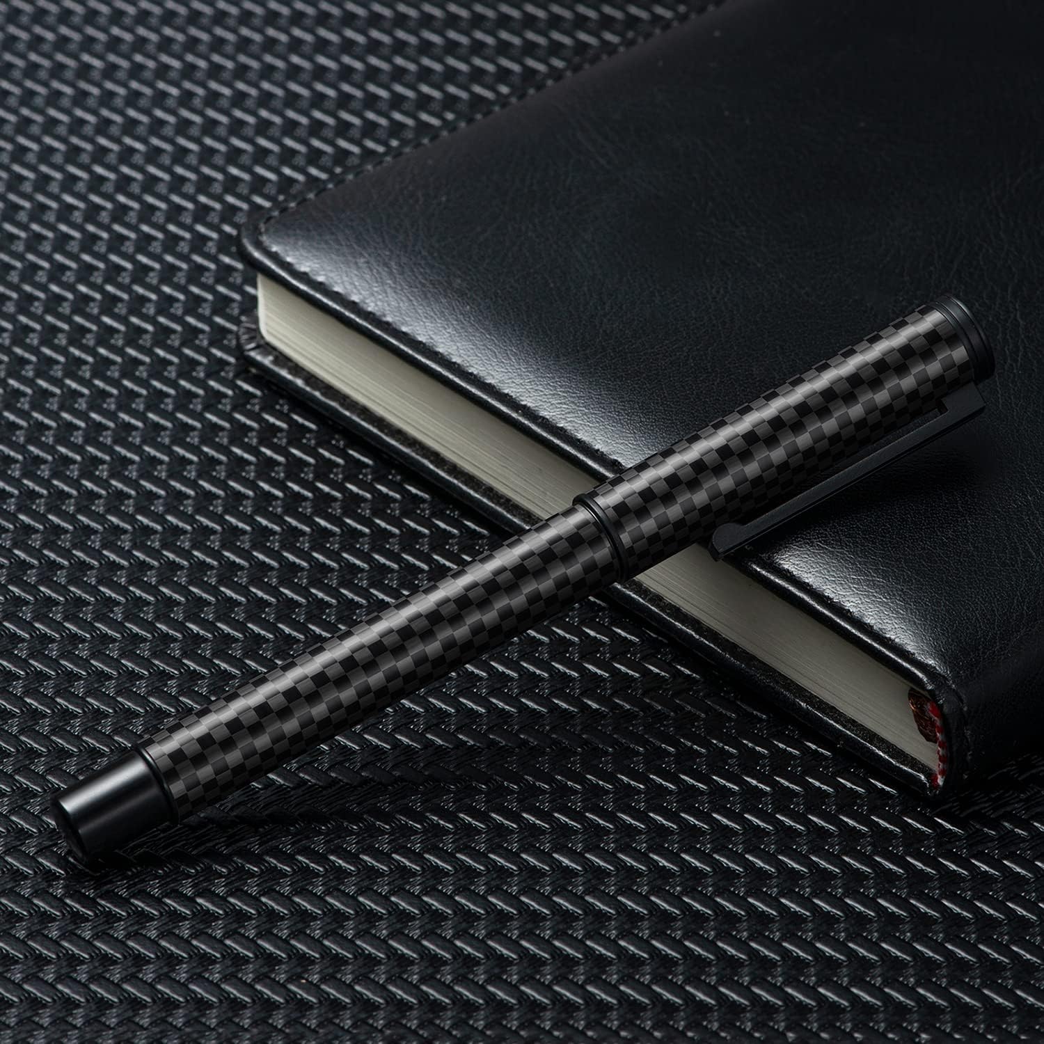 Hongdian Black Carbon Fiber Fountain Pen Extra Fine Nib Elegant Design Smooth Writer with Refillable Converter and Metal Pen Case Set
