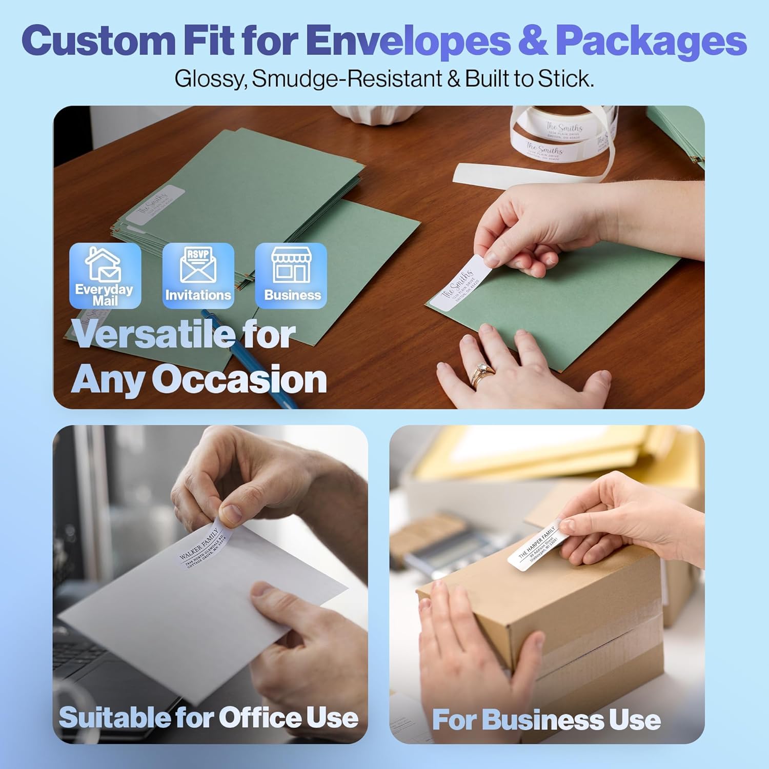 - CUSTOMIZED TOUCH FOR EVERY PIECE OF MAIL: Personalize your labels with your name and return address, giving each envelope a unique, professional touch. These customizable labels add a branded feel to all your outgoing correspondence.