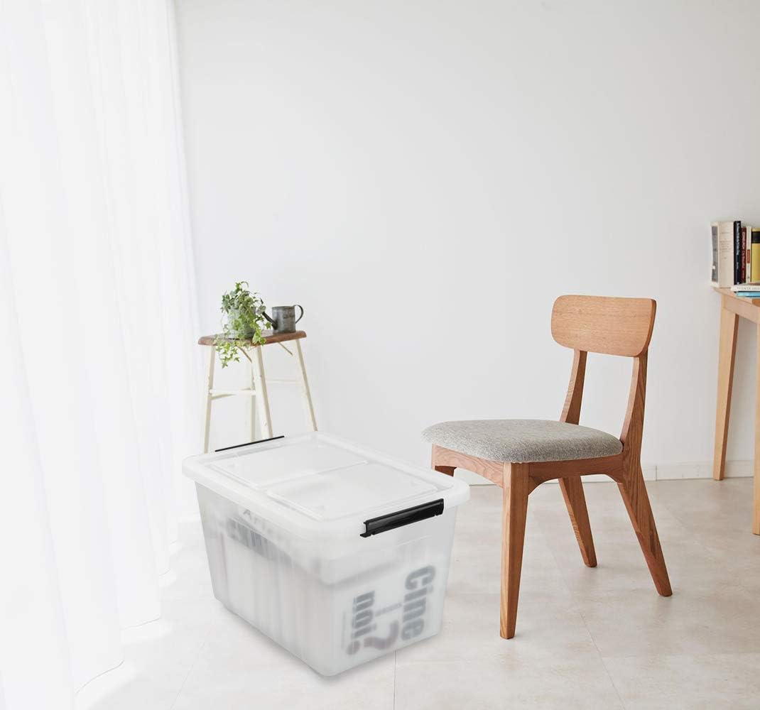 - Each box with two buckle-up latches and four roll wheels, great practicability; Clear box with lid at a glance