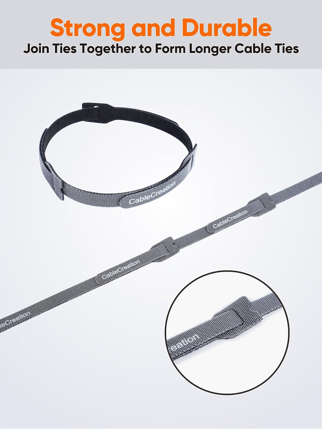 - INDEPENDENT CUTTING: You don't need to trim it. The cable wrap opens and closes easily and quickly so you can add or remove cables simply wrap around the cable and attach the magic tape; Multiple ties can be attached together to form one longer cable tie; They can be for front and back dual-use.