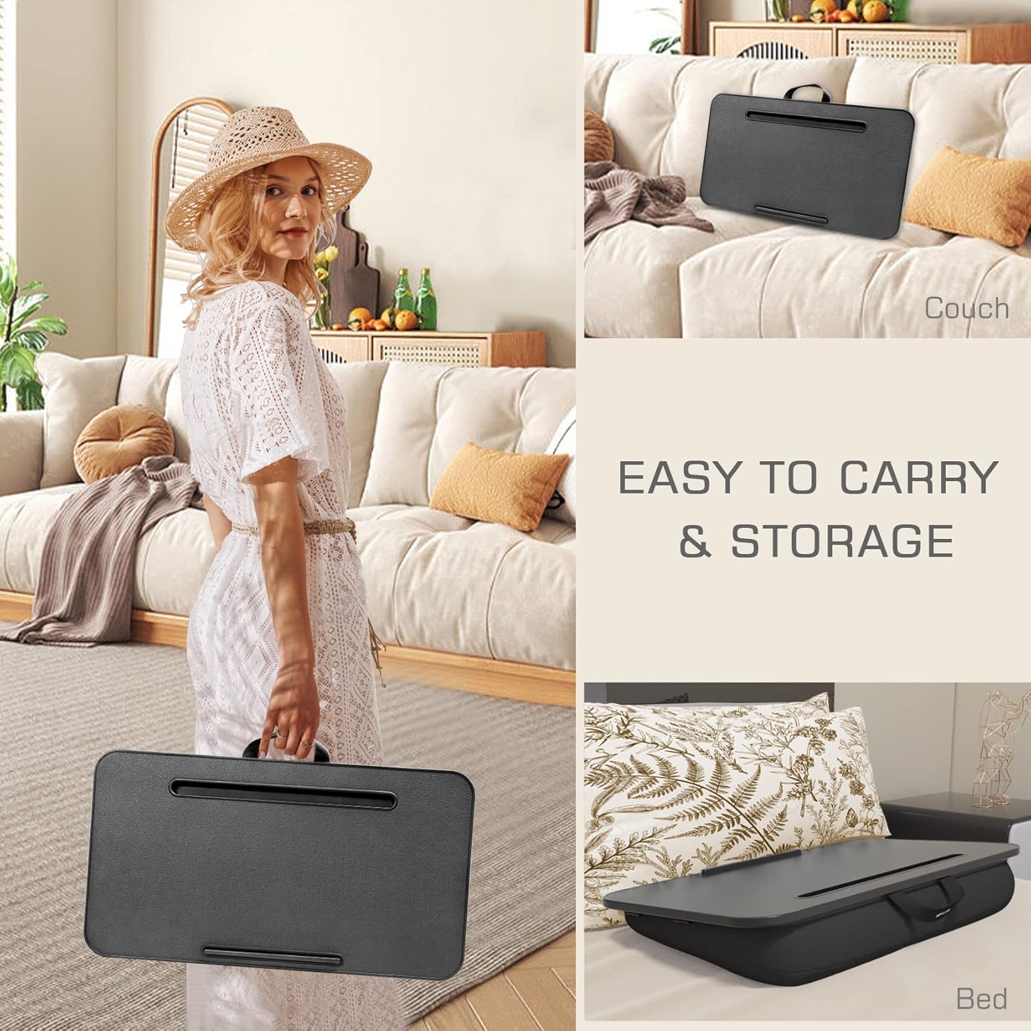 - LIGHTWEIGHT & PORTABLE: This lap desk for laptop with cushion is designed with a durable handle that makes it easy to carry and weighs 3.5 pounds. Take the lap desk with you to the library, dorm, office, and airport for a pleasant experience. Ideal for adults, College students, etc.