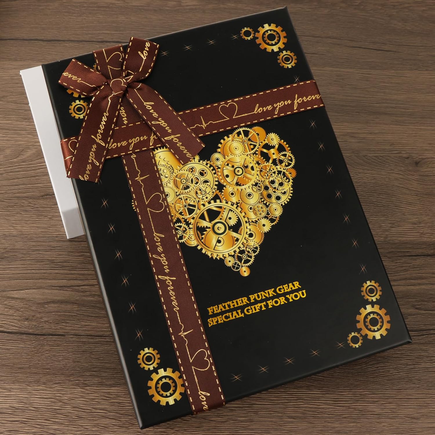 - 【Feather Pen Set Includes】1* quill pen,1* ink(Black),1* love pen holder,5* replaceable stainless steel nib,1* envelope,1* letter paper,1* bookmark,1* "gear design" Seal,1*color wax beads, 1*white wax,1*melting wax spoon,1*envelope opening tool,1*mechanical punk packaging box