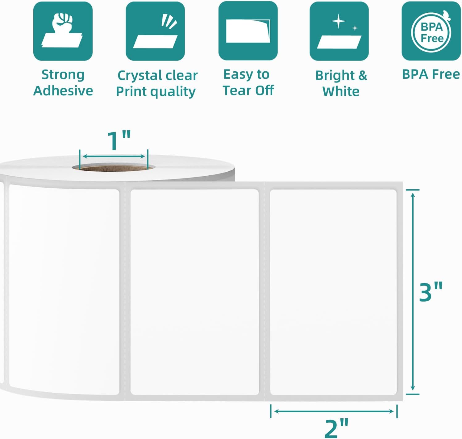 - 3 x 2 inch Direct Thermal Labels - 1” Core, 12 Rolls / Case, 700 Labels / Roll, total 8400 Labels. Compatible with Direct Thermal Desktop Printers.