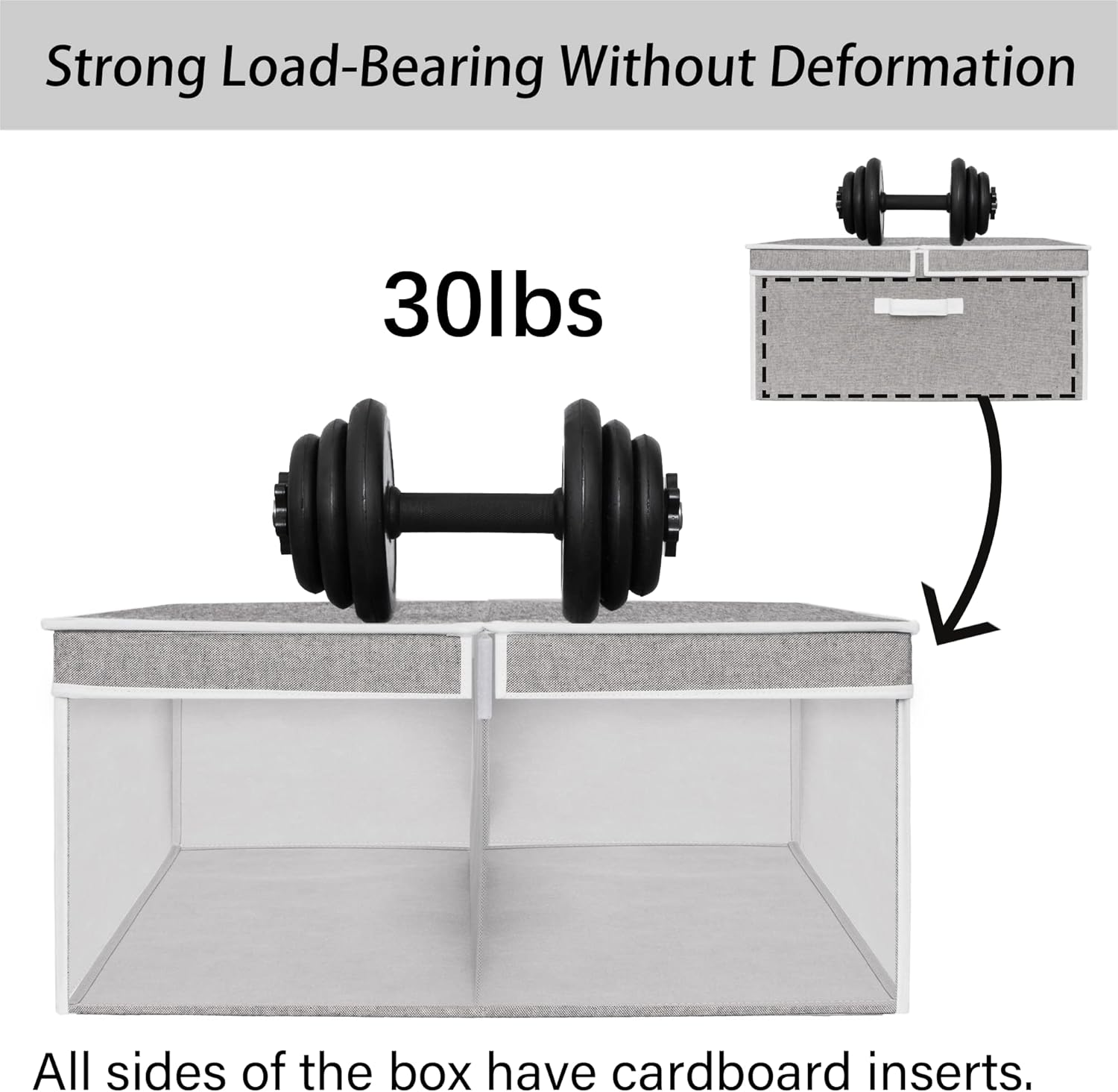 StorageWorks Extra Large Storage Bins with Lids, 55L Decorative Organizer with Divider Board, Fabric Boxes with Handles, Gray, 2-Pack