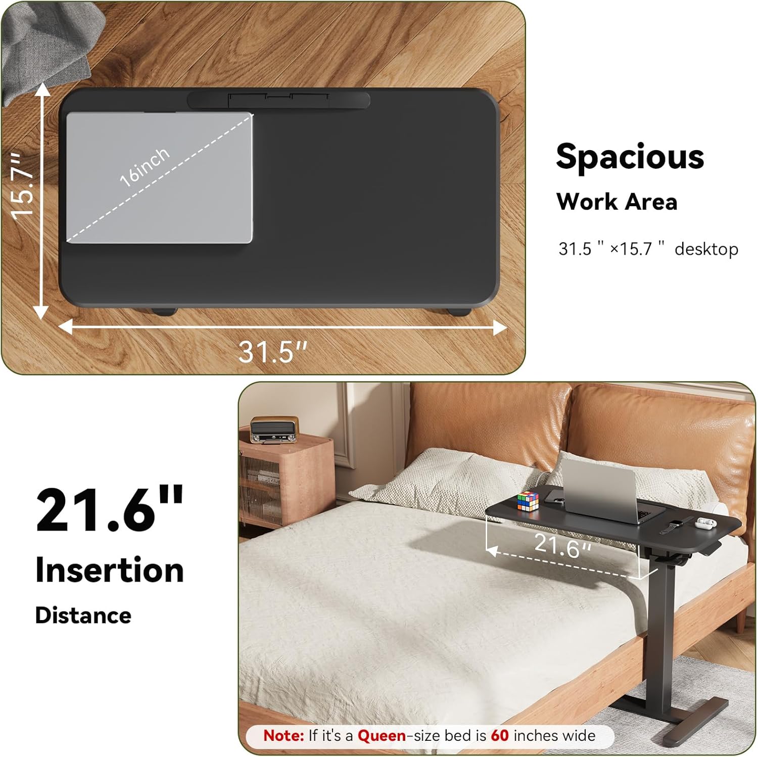 - Multi-Functional Versatility: Serving as an overbed table, rolling desk, or hospital bed table, its spacious 31.5"W x 15.7"D desktop provides a sturdy surface for eating, reading, or working near beds, couches, or recliners
