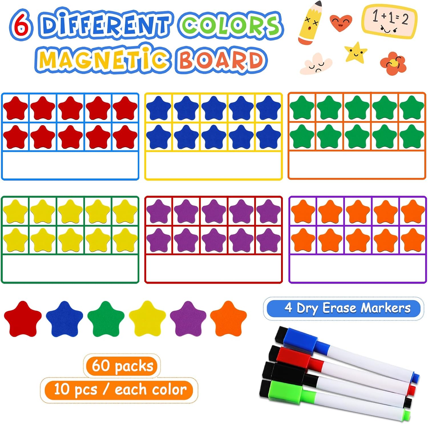 - Great Kindergarten Learning Toys: There are 6 different colors of Ten-Frame boards, and 10 shape counters of each color.4dry-erase markers with colored pigment, and a portable storage bag.There is an extra area for writing equations and numbers beneath the boards.which will attract kids’ attention and stimulate their interest in learning. Our set of toddler learning toys is perfect for kindergarten learning activities.