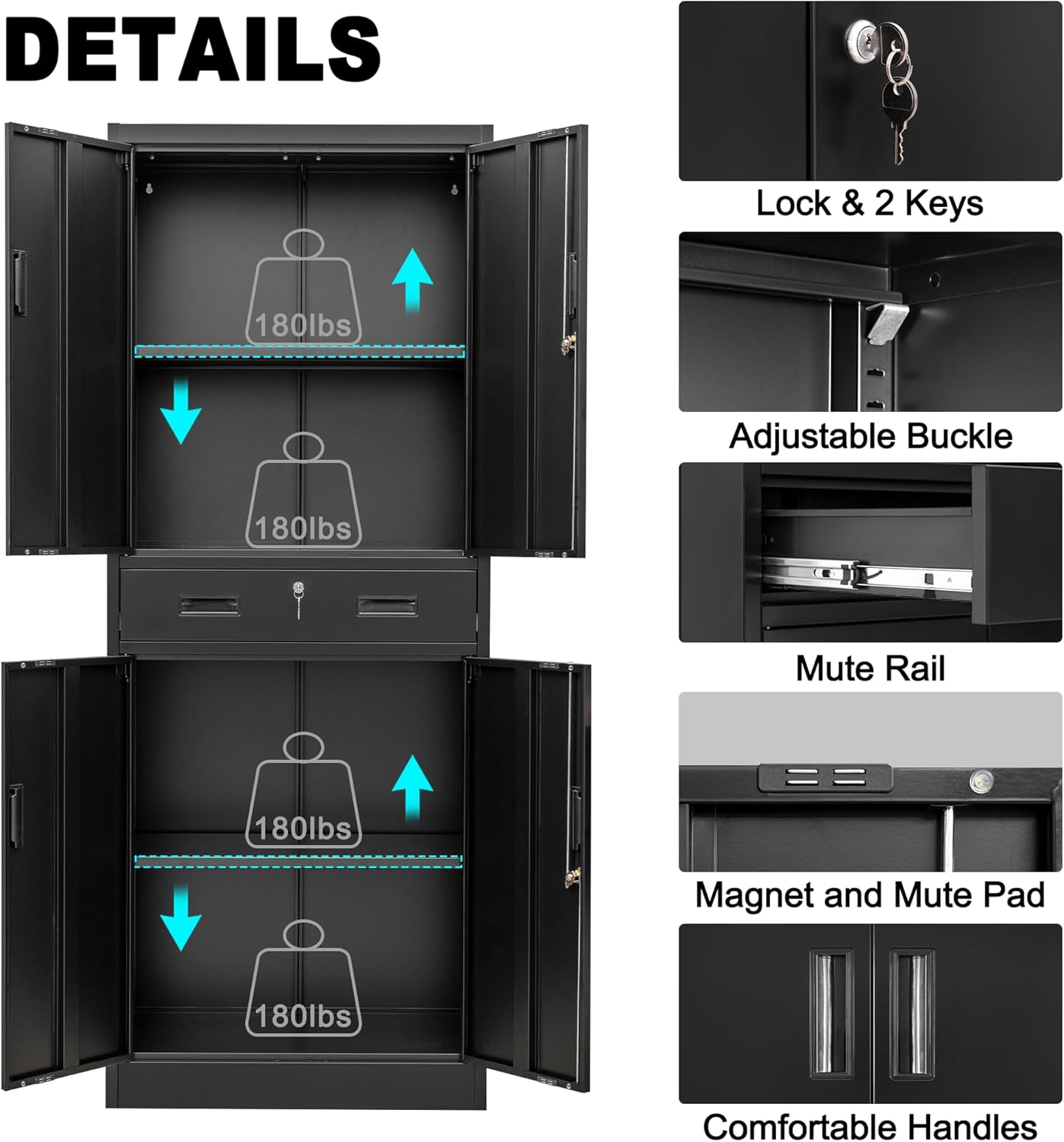 - Easy to Assemble: The black storage cabinet comes unassembled, and we provide very detailed installation instructions in the package. The metal storage cabinet with lock is easy to assemble. Dimensions inches: 15.8"D x 27.6"W x 71"H.
