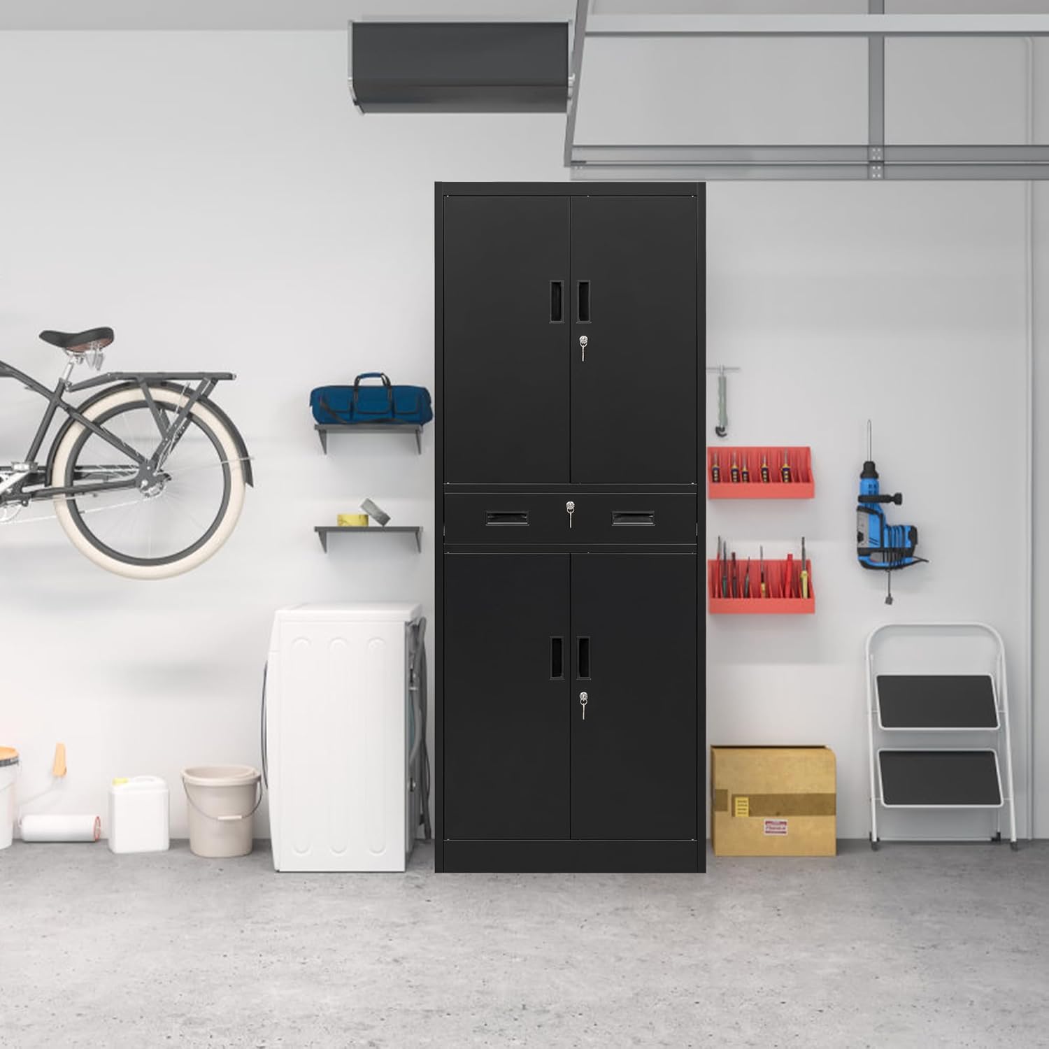 CMY Metal Storage Cabinet, 71" H x 28" W x 16" D Locking Storage Cabinet with Adjustable Shelves and One Drawer, Steel Cabinets for Office, Garage, Home, School, Utility Room(Black)