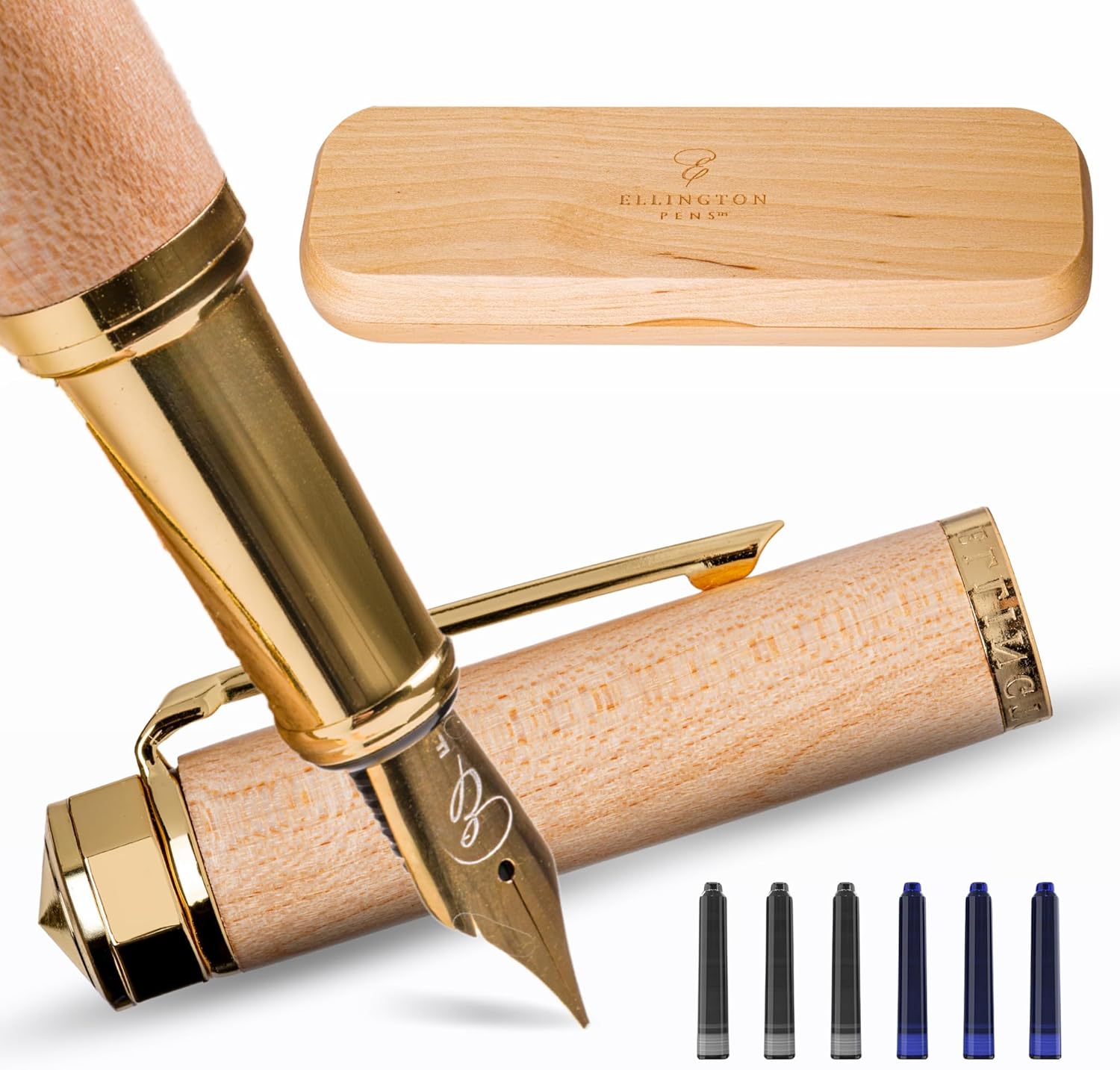 Elegant Wood Fountain Pen Set ā Includes Wooden Pen Box, Ink Converter, 6 Ink Cartridges, and Gift Box ā Writing, Calligraphy