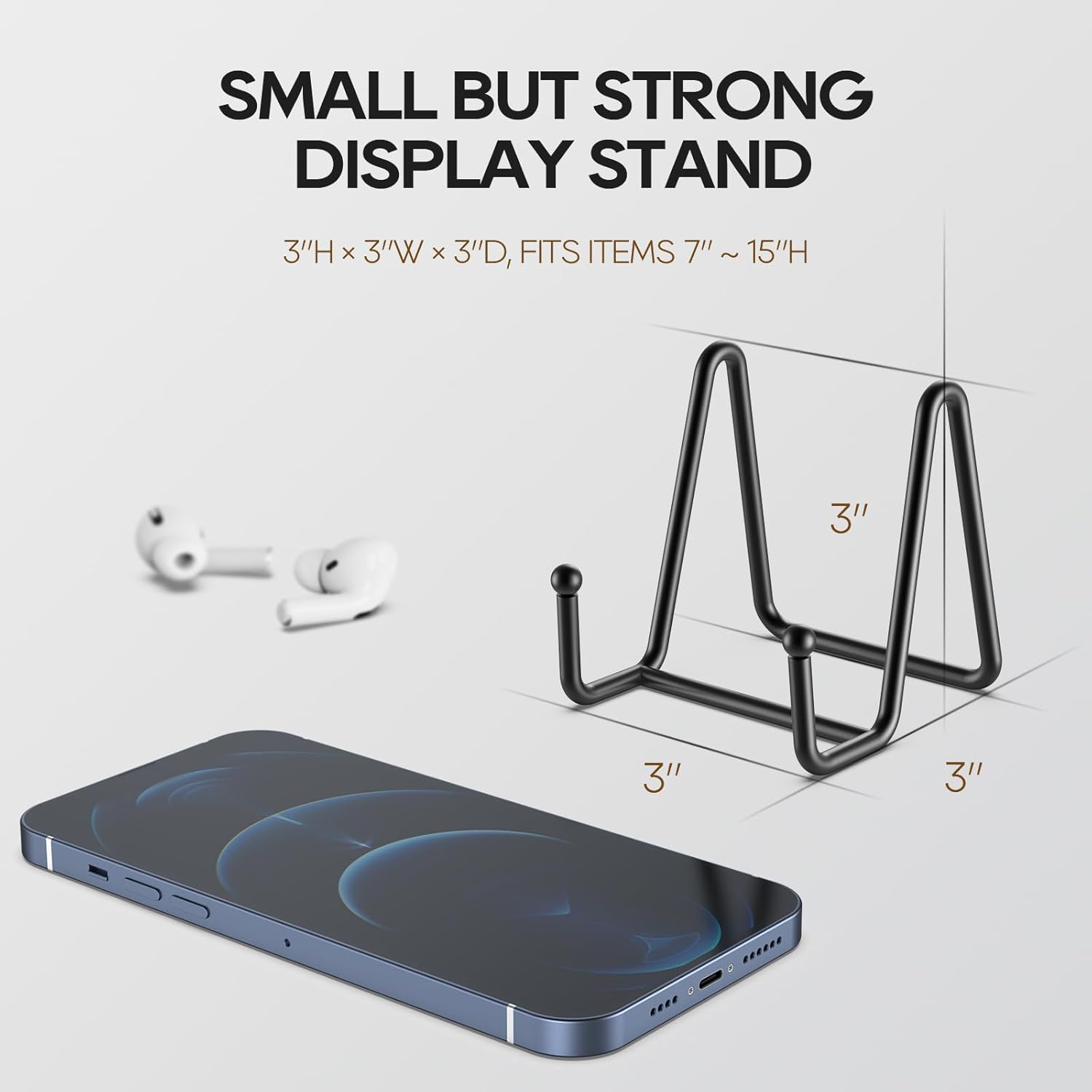 HONGYUTAI 3 Pack 3 Inch Plate Stands for Display Picture - Small Table Top Display, Decorative Metal Frame Holders for Book, Photo and Platter, Tabletop Art, Black