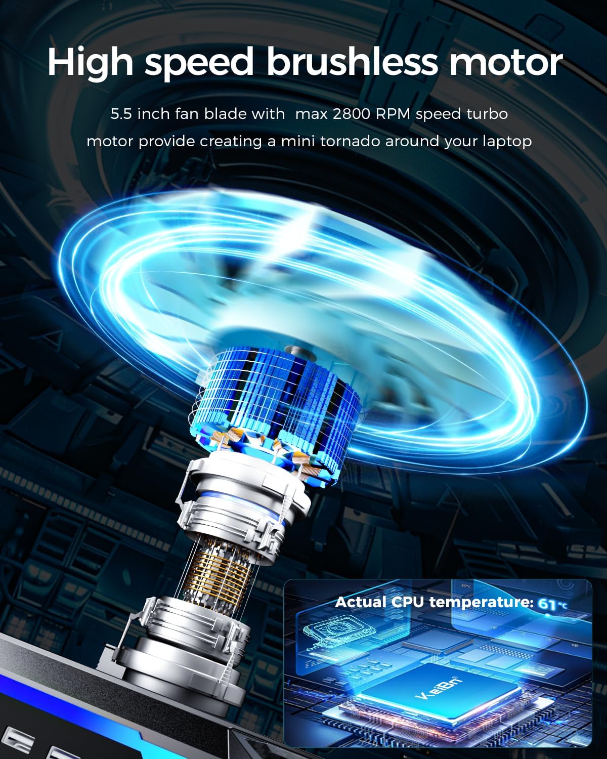 - Rapid Cooling: large-diameter turbofan combined with sealed foam, 360-degree surrounding cooling, no air leakage. Your computer will also stay cool while you're gaming. Warning: The higher the speed, the better the cooling effect, and the greater the noiseοΌ so its noise can reach 65 dB at the highest speed. If you are sensitive to noise, please buy carefully.