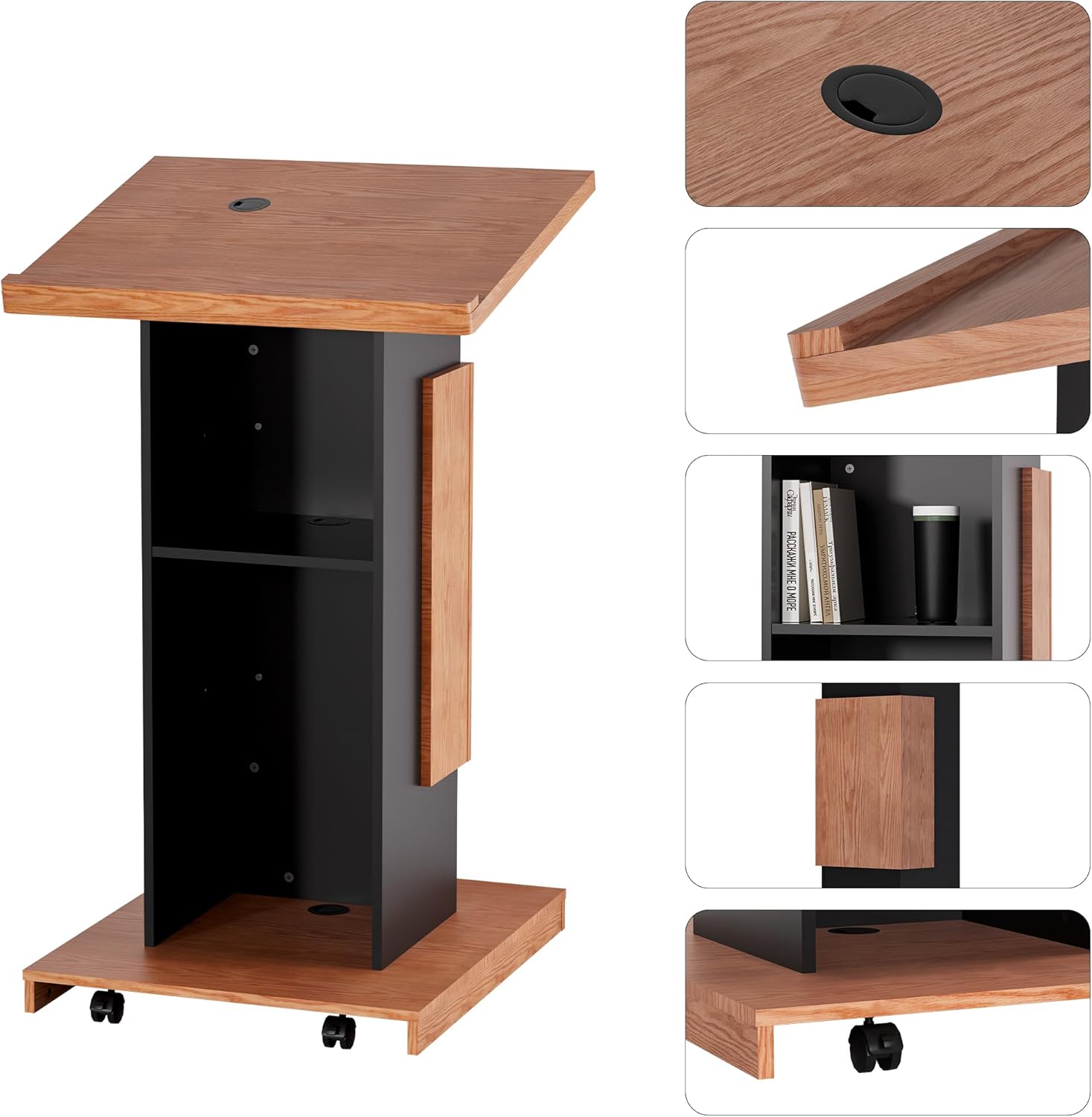 - 【Portability and Stability】This wooden podium comes with four flexible wheels, intelligently designed with lockable features to keep it steady during presentations, ensuring both safety and stability. And hey, those wheels are detachable too!