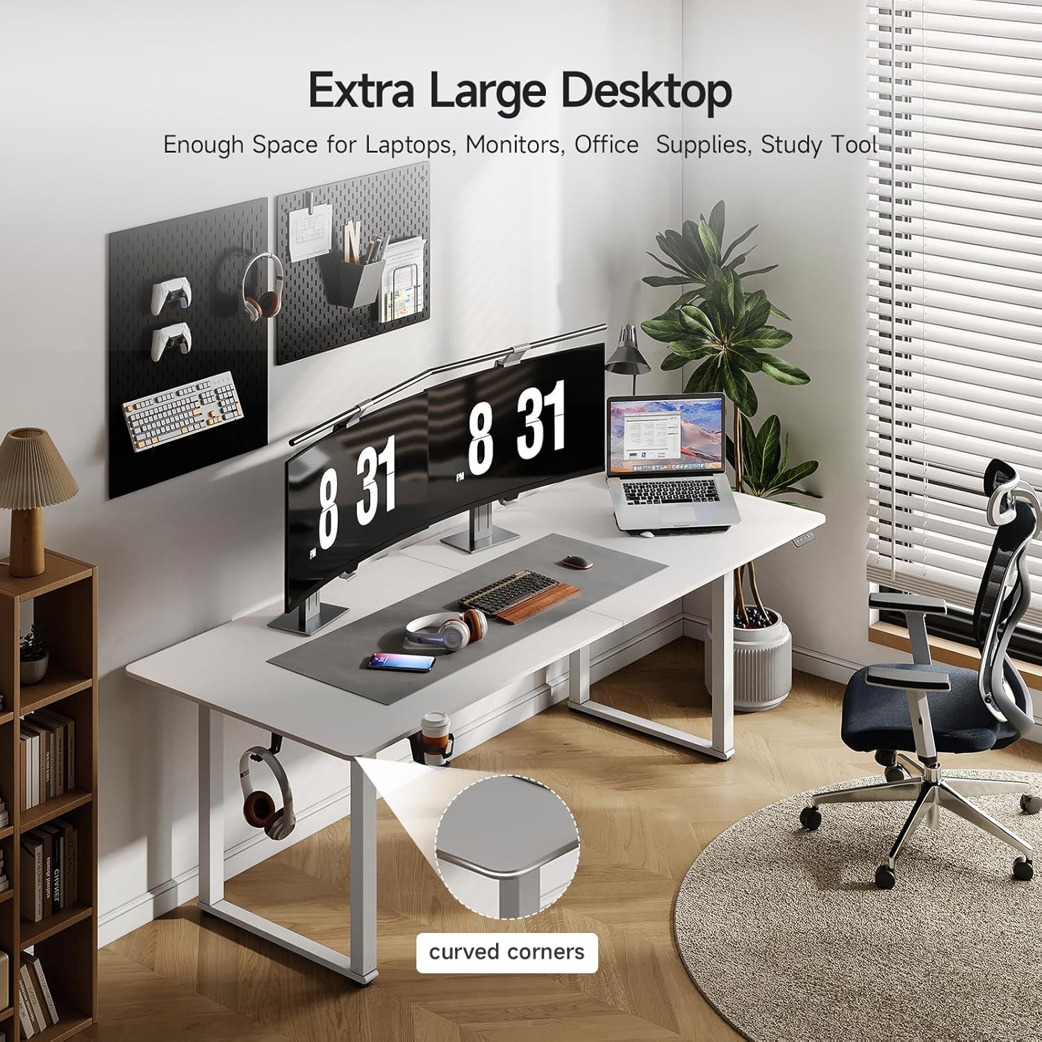 Standing Desk, 71x32 Inches Rectangle Stand Up Desk with 4 Legs, Dual Motor and Memory Controller, Adjustable Height from 28-46 Inches for Home and Computer Workstation, White