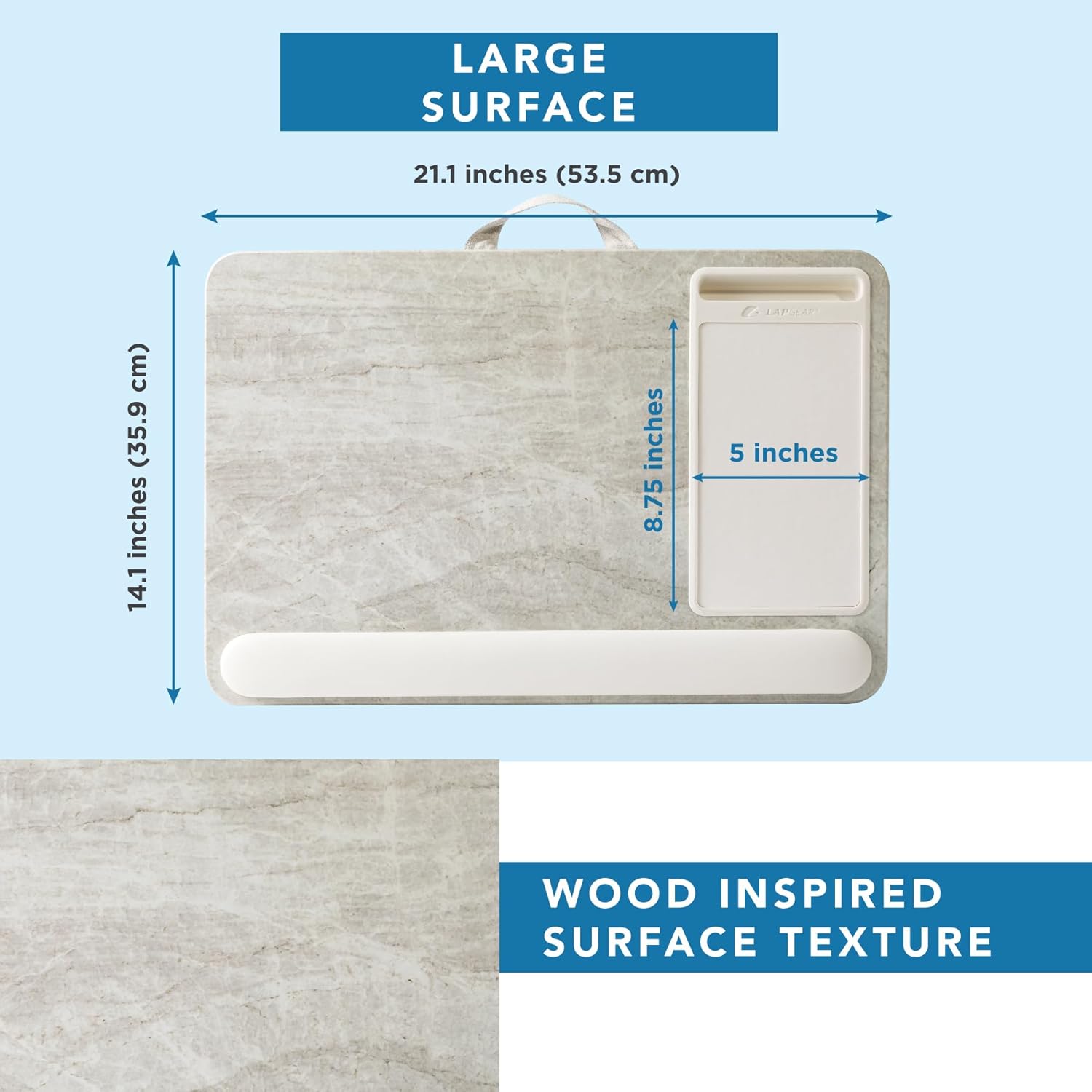 LAPGEAR Home Office Pro Lap Desk with Wrist Rest, Mouse Pad, and Phone Holder - Taj Mahal Marble - Fits up to 15.6 Inch Laptops - Style No. 91601