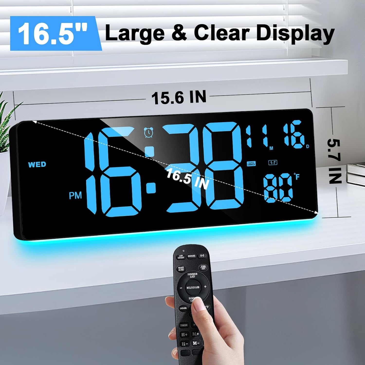 - ăConvenient to Useă- The remote control for the extra large digital wall clock can be operated from up to 32 feet away, iving room, kitchen, garage, farmhouse, office, warehouse, classroom, gym, shop, nursery. And it is also the best gift for friends, partner and the elderly.