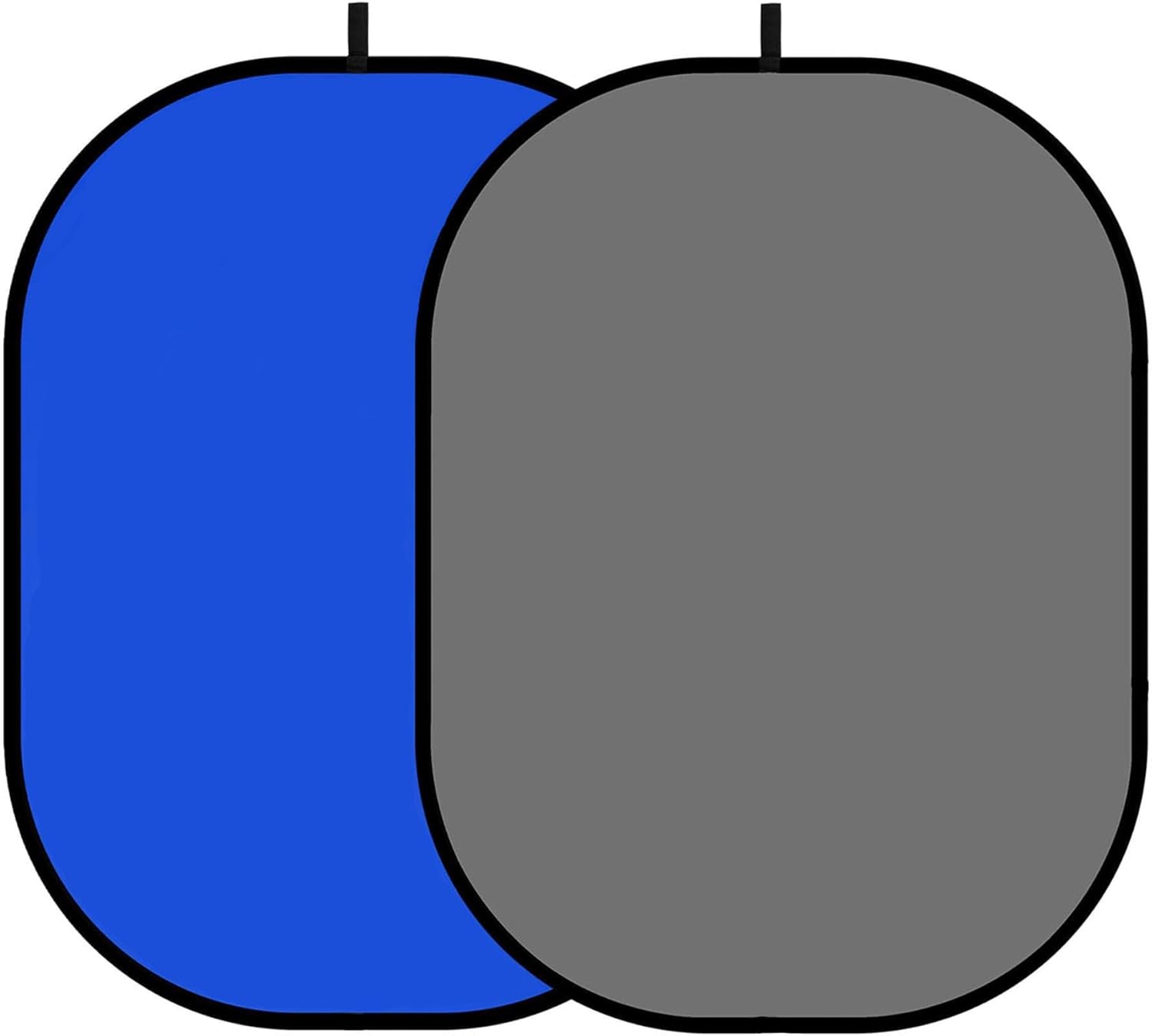 3.3x5ft/1x1.5m Chromakey Backdrop, 2-in-1 Blue Screen and Grey Screen, Collapsible Reversible Pop Up Background for Photography Studio, Live Streaming, Video Shooting (Blue/Gray)