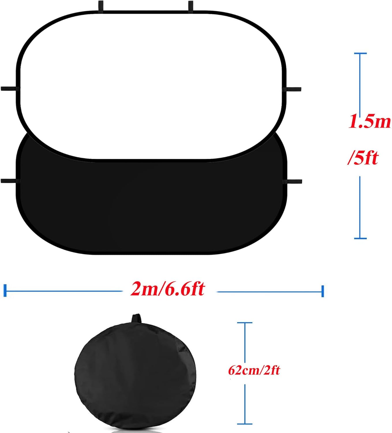 - 【Double Side Backdrops Panel】5x6.6ft Double-sided Collapsible twist Black Screen & White Screen background backdrop( One side-black , Other side-white ), Only 1 pc of product.