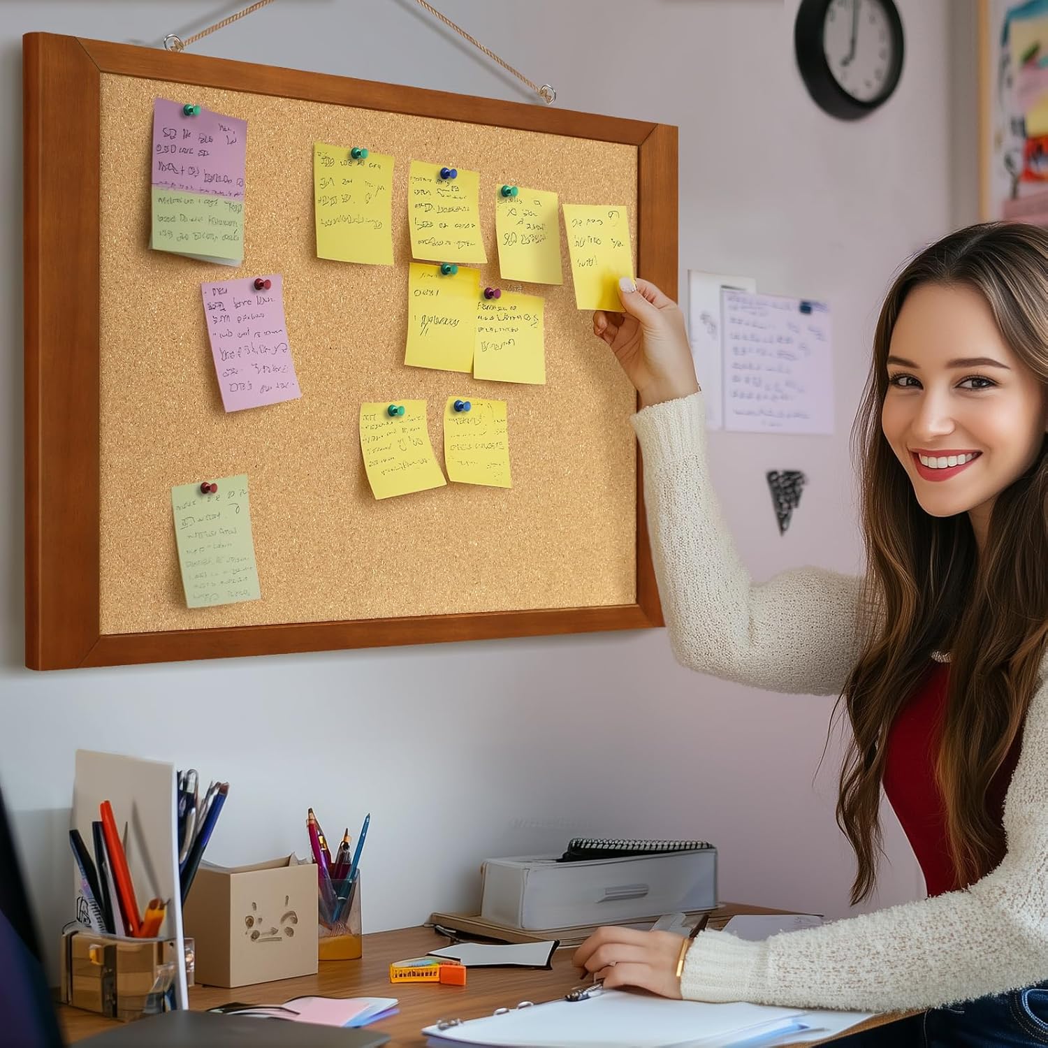 Cork Boards for Wall 16” x 24”, Extra Wide Wooden Framed Bulletin Board, Decorative Hanging Pin Board, Corkboards for Wall Notice Board Memo Board for Home, School, Office, Two-Sides Cork