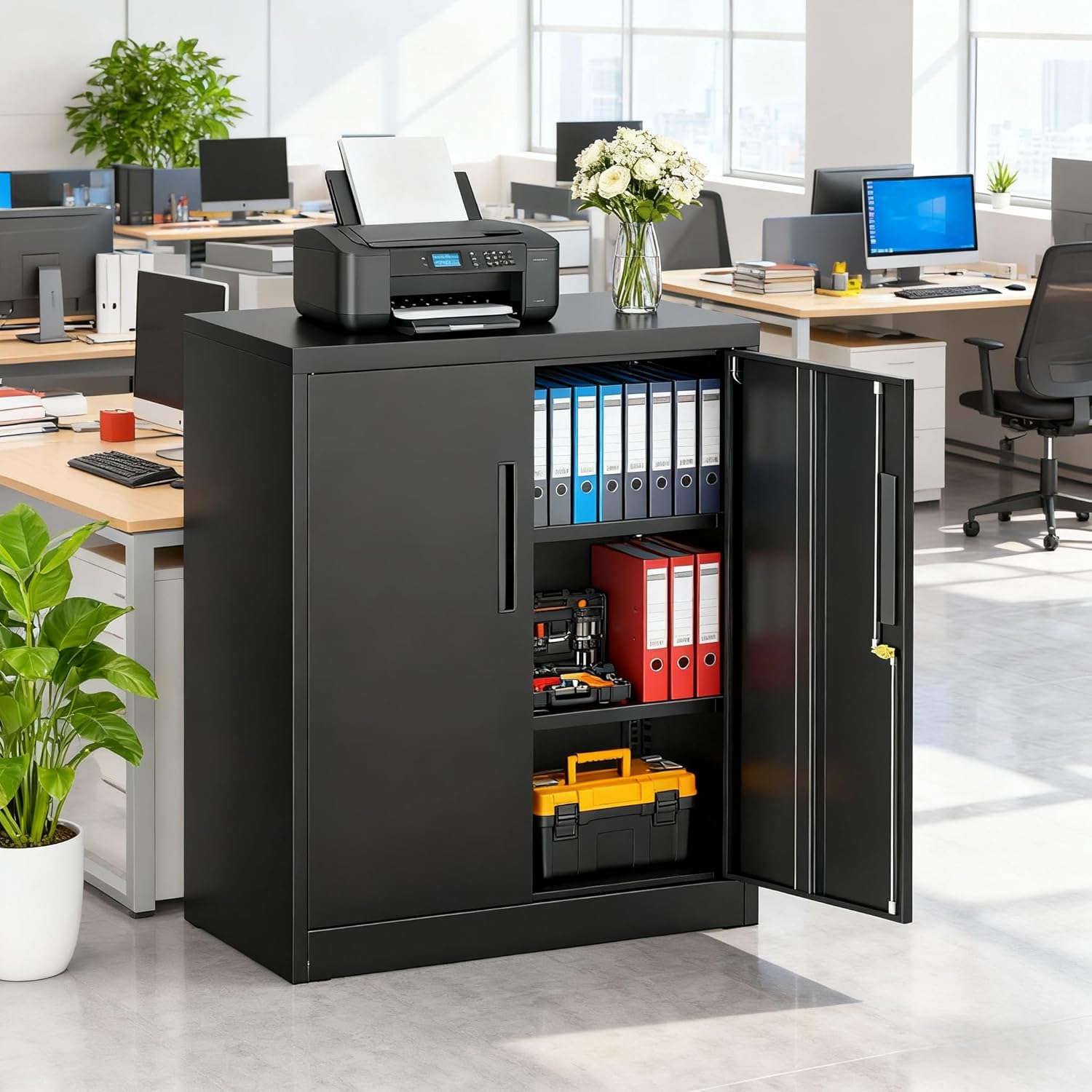 - 【Security design】We've upgraded the locks of the locking file cabinet. It now has a 3-point locking system and comes with 2 keys for better privacy and security of your belongings. Both doors are reinforced with extra steel for added protection. It offers greater security for your valuables and important items, allowing you to safely store and access your tools.