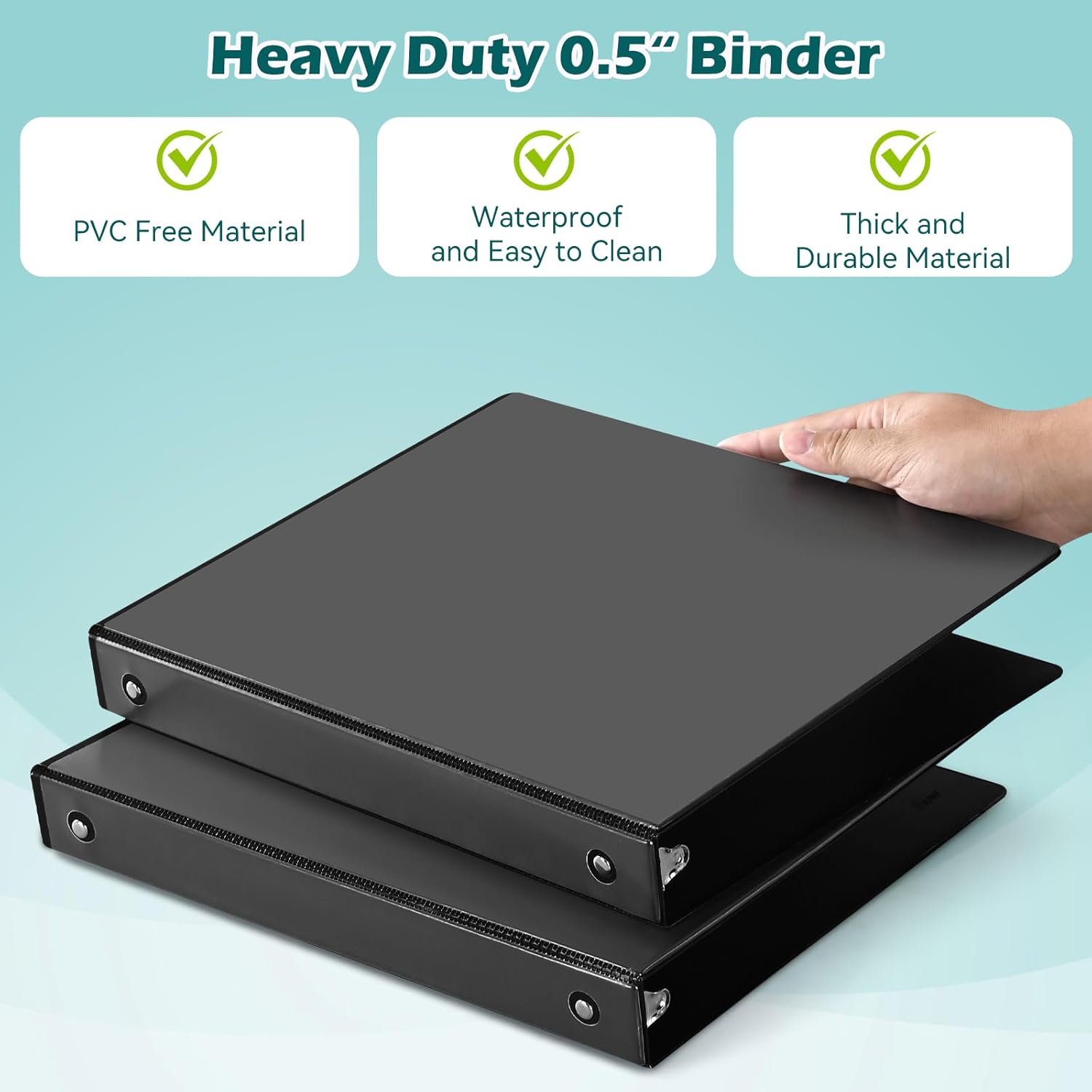 - 12 Pack 0.5" Black Binder: Come with 12 Bulk 0.5 inch binders with round ring, these binders are a great choice and money saving when planning for budgets, presentations, conferences and more