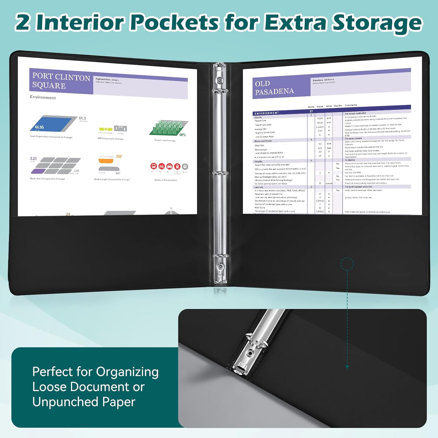 - Storage Capacity: The 0.5 in round ring binder holds up to 100 sheets of 8-1/2-by-11-inch paper or 3-hole folders.The two pockets inside the three ring binder work well for storing unpunched documents,handouts, small papers and other loose.