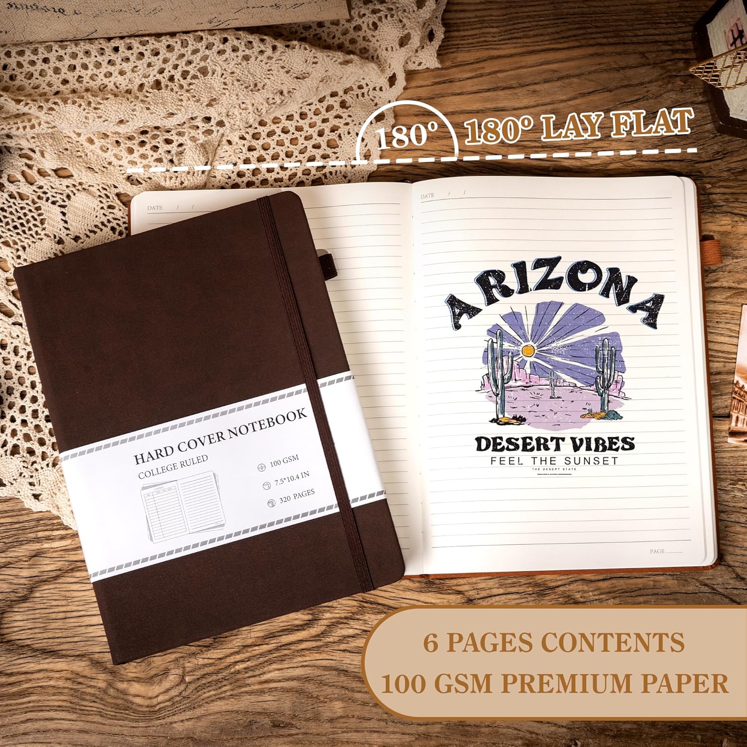- 180° FLAT LAYING DESIGN: The notepad is securely bound and sits perfectly 180 degrees, the pages are made of high quality thick paper. Expandable interior pocket for storing documents, 2 beautiful ribbons for quickly finding contents, elastic band works well to keep the lid closed, pen loop makes this notebook easy to carry.