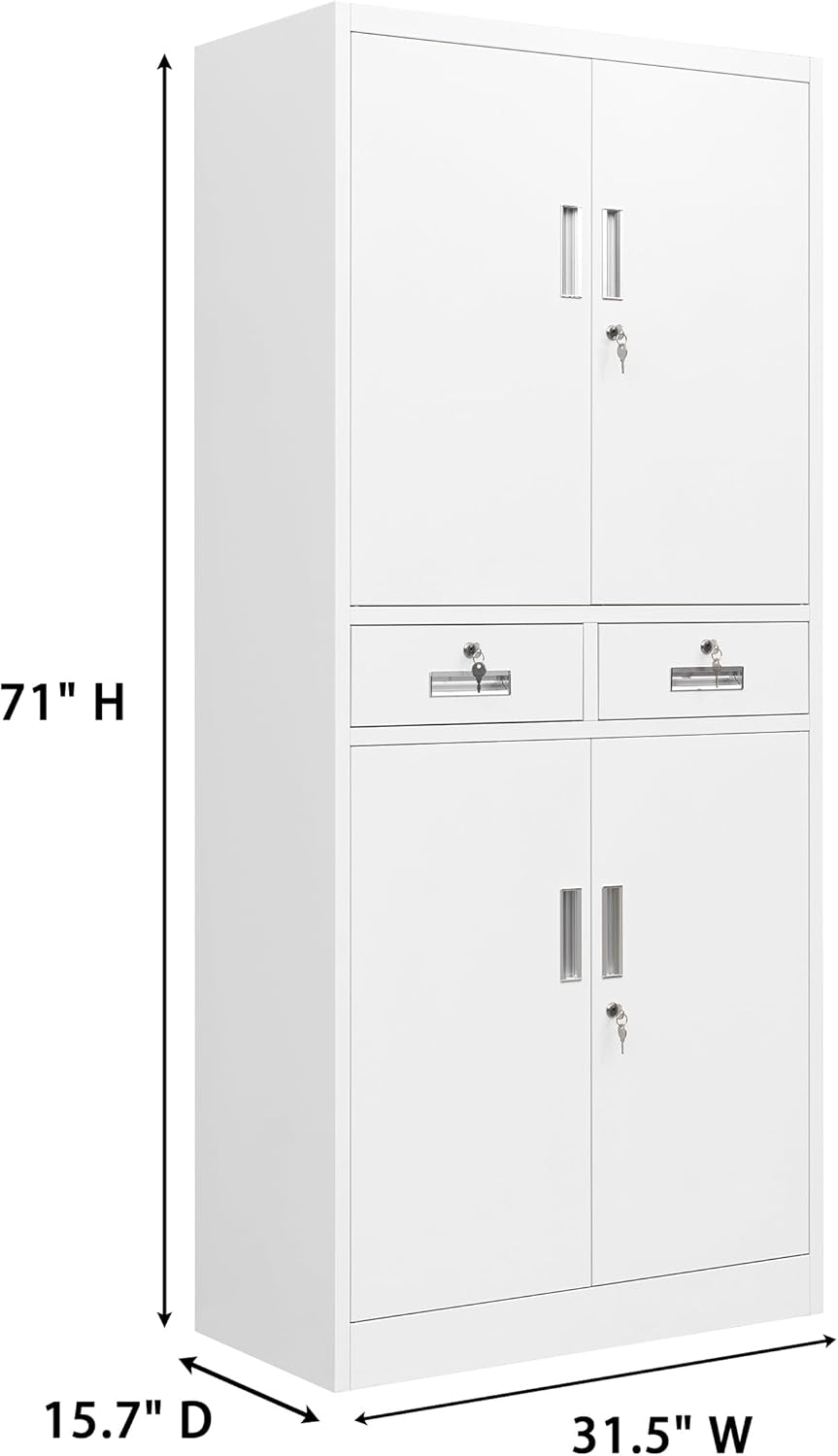 - EASY to ASSEMBLE: The white storage cabinet comes unassembled, and we provide very detailed installation instructions in the package. The metal storage cabinet with lock is easy to assemble. Dimensions inches: 15.8"D x 31.5"W x 71"H.