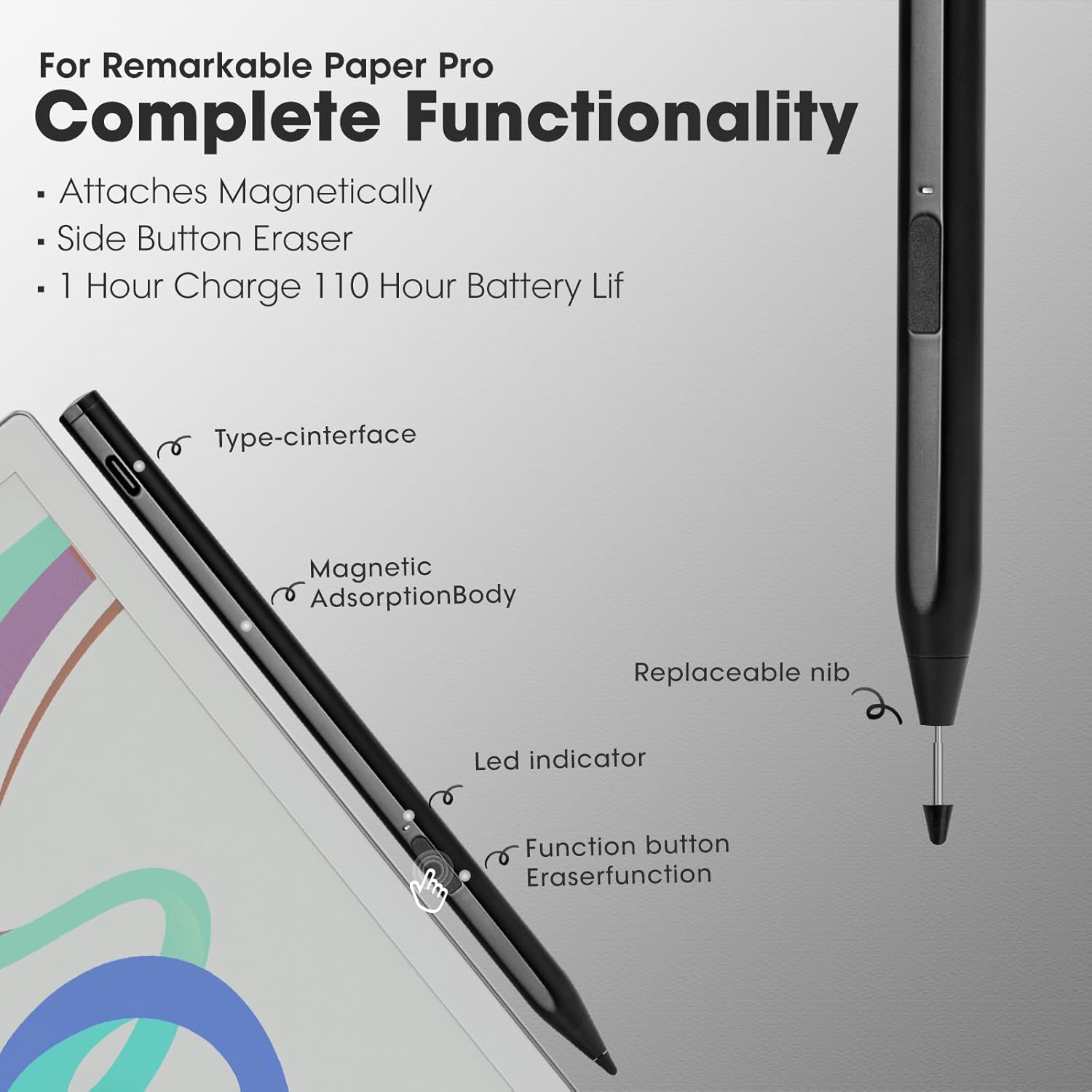 - STRONG MAGNETIC FUNCTION - The stylus pen for remarkable paper pro adopts magnetic adsorption technology, with a strong magnet built into the pen body, which can firmly adhere to the edge or designated position of compatible devices. Combined with optimized design of magnetic suction position, it can firmly adhere to the edge of compatible devices, ensuring that the stylus can be accessed at any time, greatly improving the convenience of user use